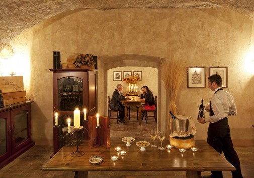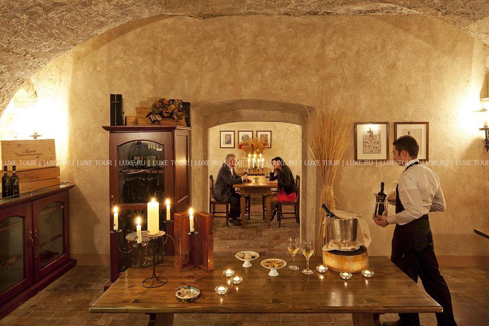 L' Enoteca — зал, где в старинном интерьере, можно попробовать великолепные вина со всего мира.