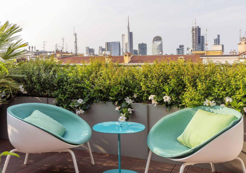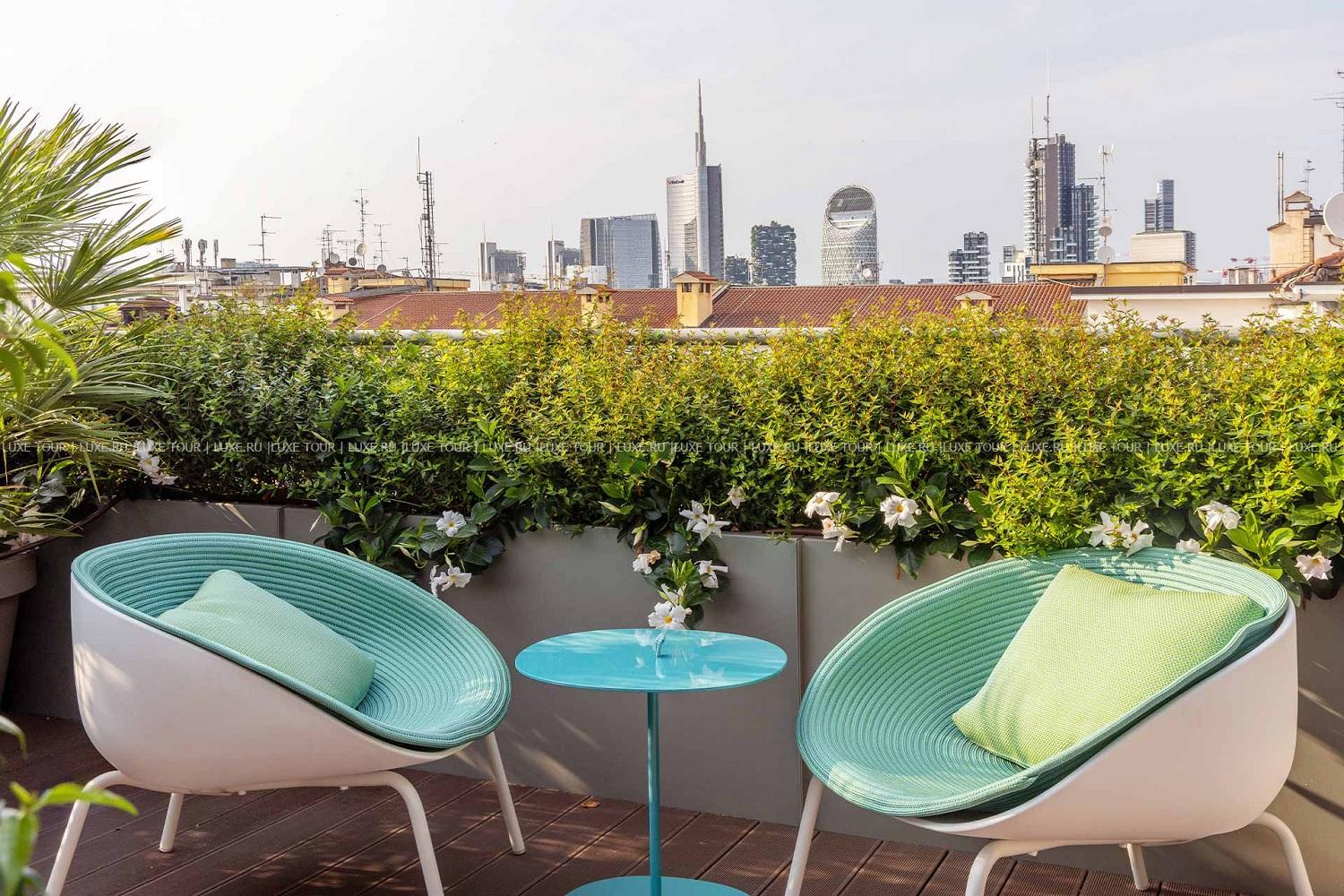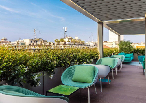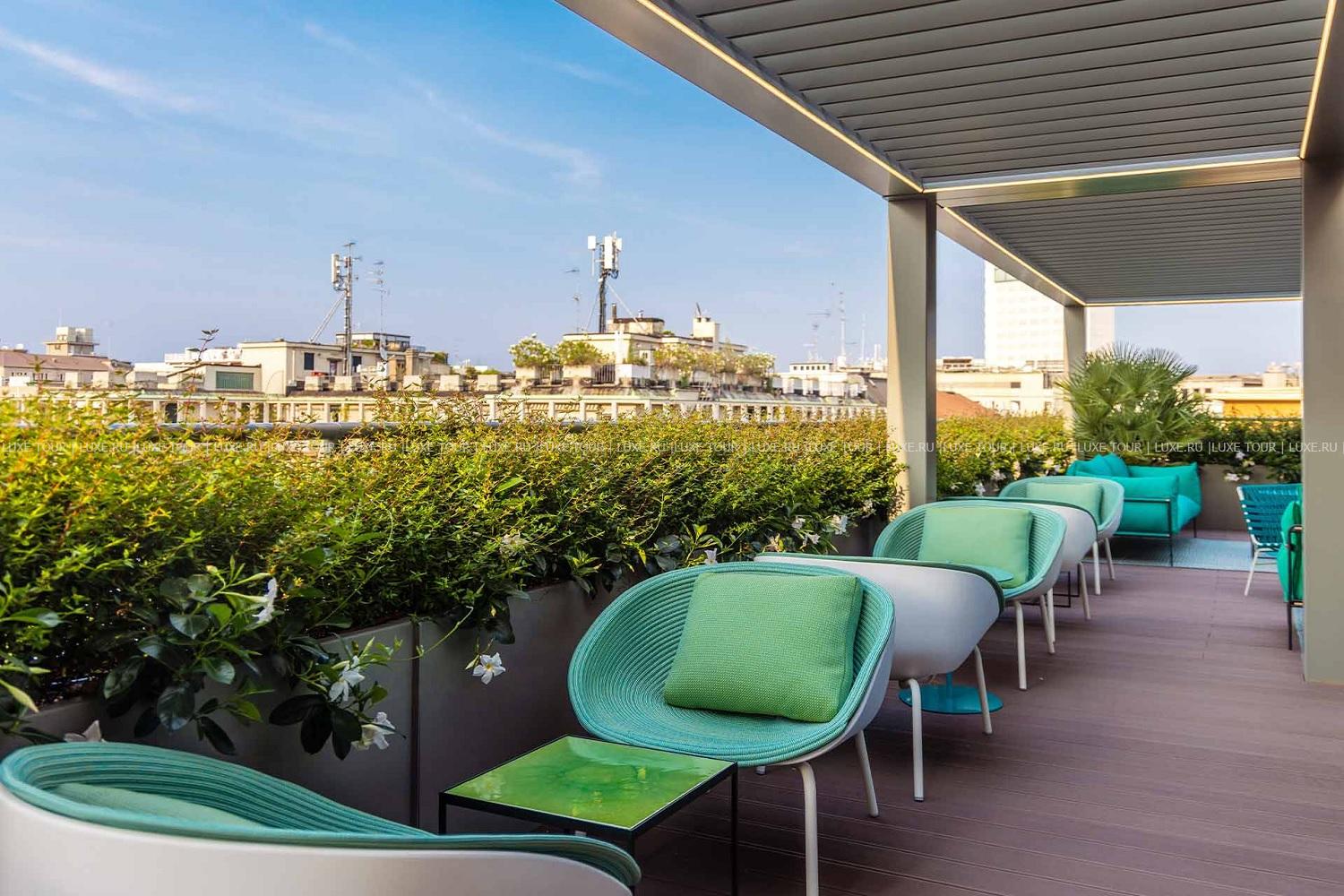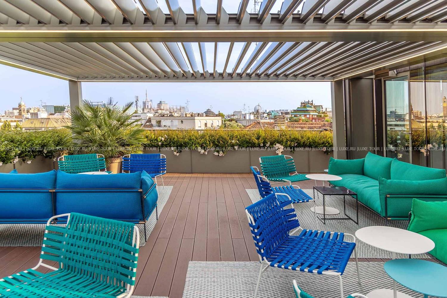 • Стильный бар на крыше Rooftop by Sadler, расположенный на террасе, предлагает авторские коктейли, изысканные закуски и потрясающий панорамный вид на район Брера и Милан.