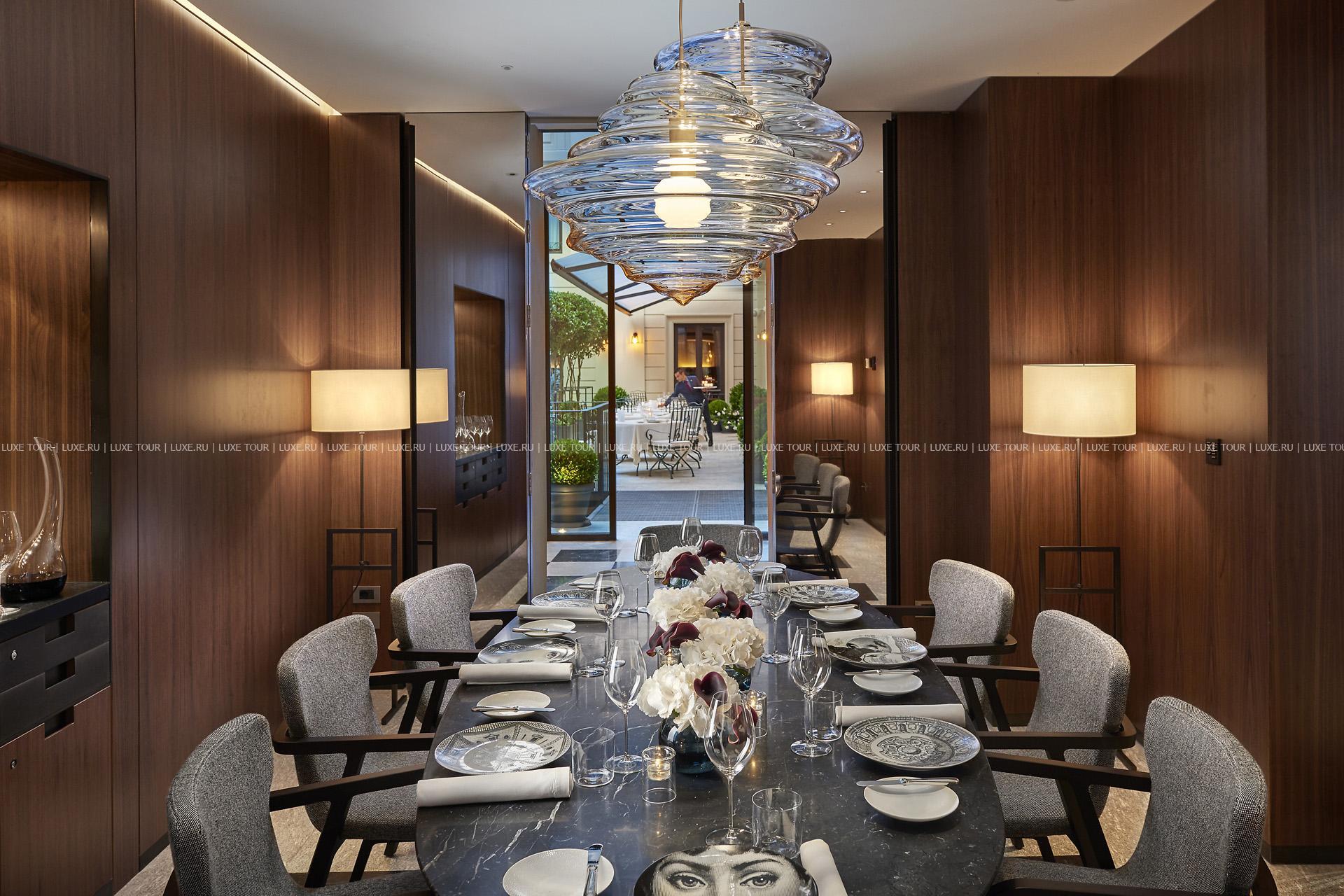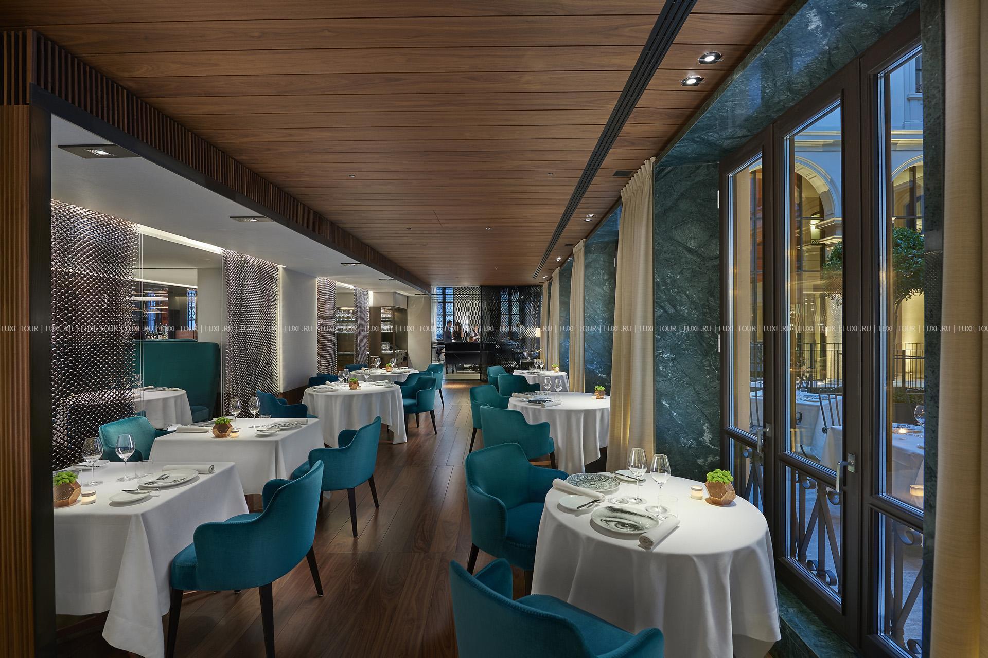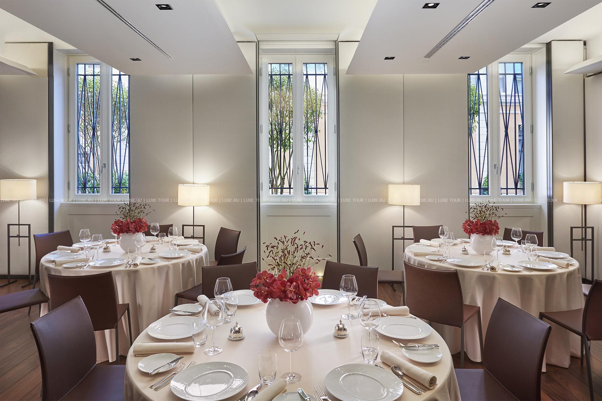 • Элегантный гастрономический ресторан Seta, отмеченный двумя звездами Мишлен, представляет изыски высокой итальянской кухни от прославленного шеф-повара Антонио Гуида. В теплое время года работает открытая терраса в очаровательном внутреннем дворике ресторана.