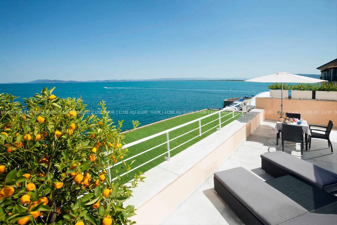Villa Domizia Нotel, Тоскана расположен в дивном уголке Мареммы, у частного пляжа на полуострове Монте-Арджентарио, омываемом прозрачными средиземноморскими водами. Великолепный вид на лазурное море и залив Домициано открывается из элегантных номеров отеля, и гастрономического ресторана, предлагающего тосканскую кухню, из пляжного бара и с живописных террас. Также гости могут прокатиться на каяках, заняться дайвингом, поддержать форму в тренажерном зале и продегустировать изысканные вина из собственной коллекции отеля. Villa Domizia Нotel, Тоскана предлагает спокойный и комфортный отдых среди сказочной природы итальянского побережья.