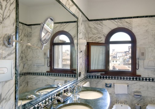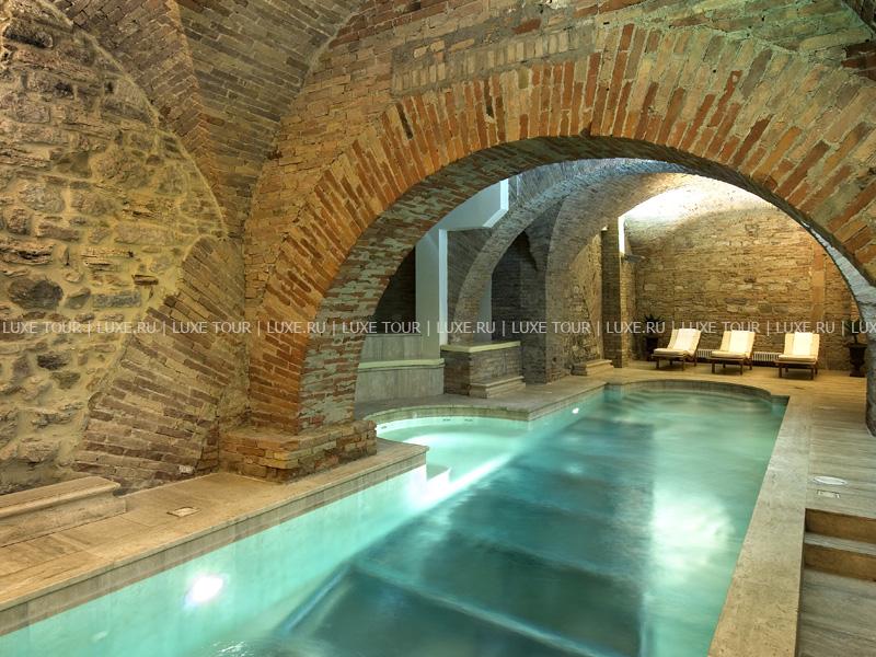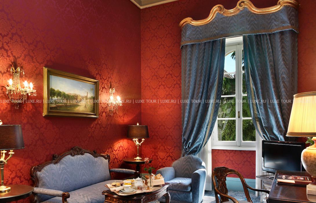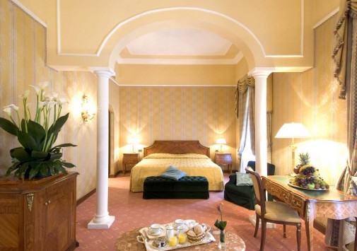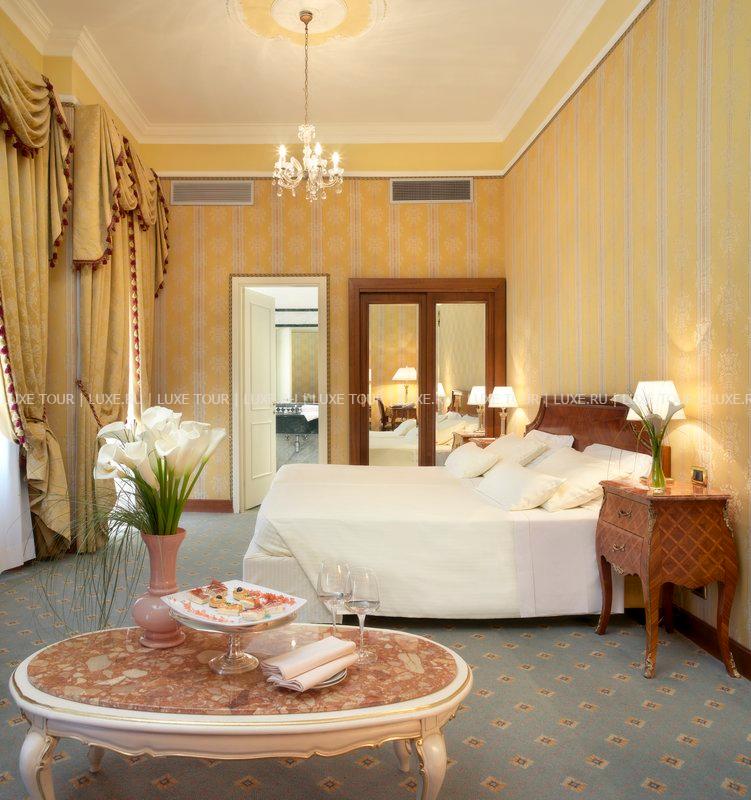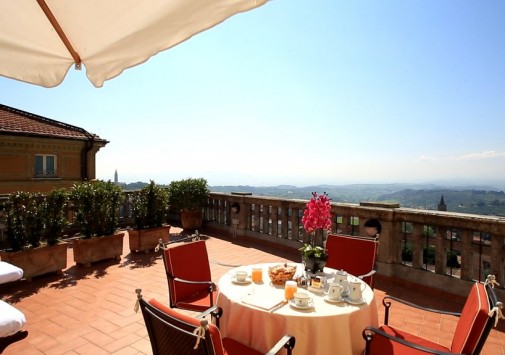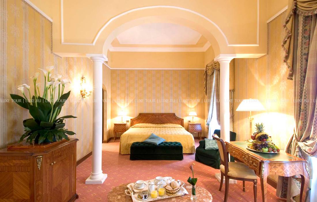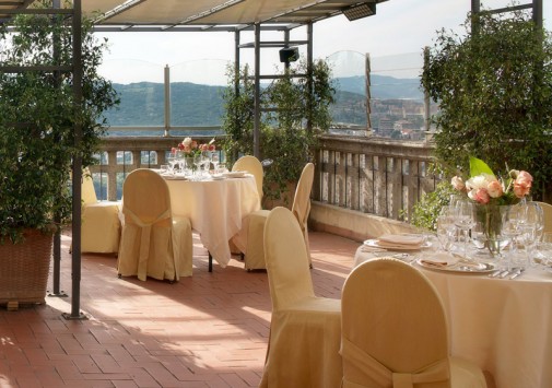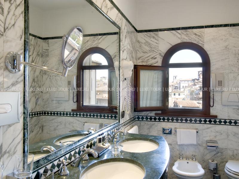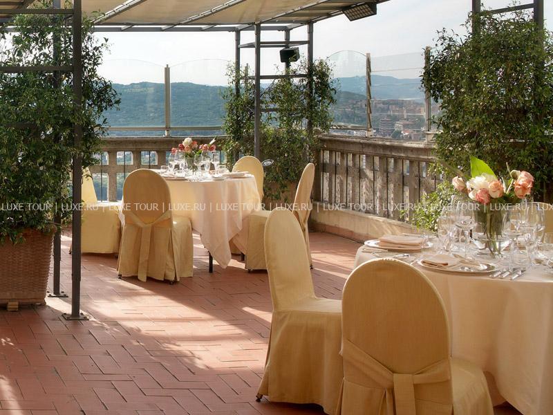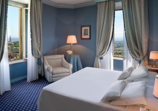 Респектабельный отель, открытый в 1882 году, расположился на живописном холме, откуда открывается панорамный вид на долину Умбрия, и является излюбленным местом известных актеров и политиков — здесь останавливались английская королева, Чарли Чаплин, принц Монако. Интерьеры отеля напоминают роскошный стиль Belle Epoque: антикварная мебель, красивые драпировки, лепнина на потолках, паркетные полы, украшенные дорогими коврами, хрустальные люстры и зеркала в золоченых рамах, камины, выложенные из натурального камня, стены, отделанные шелком.
