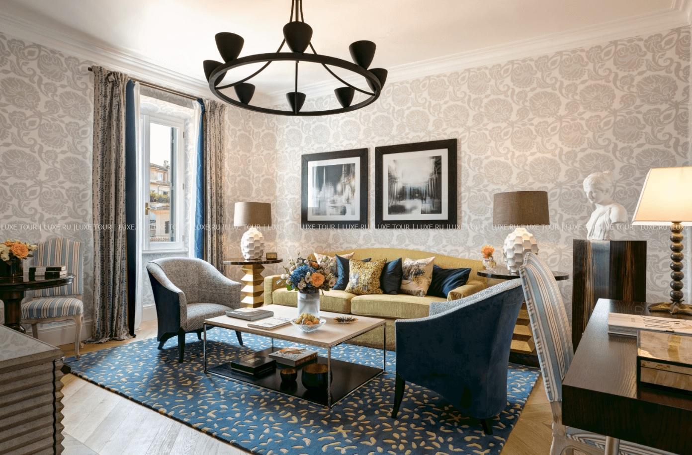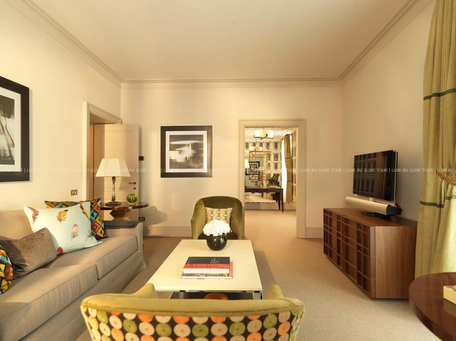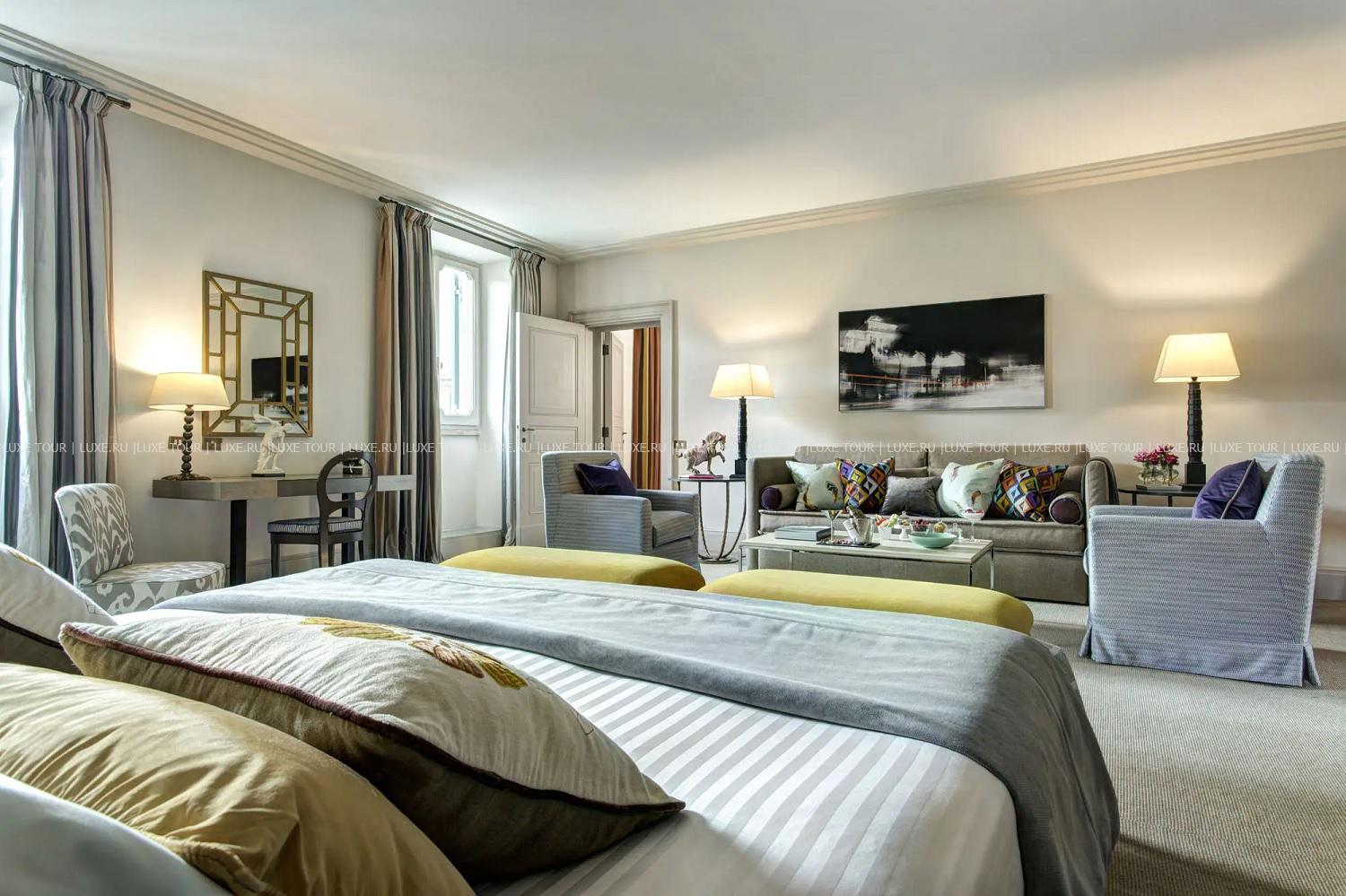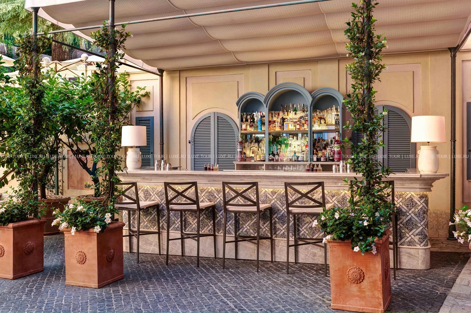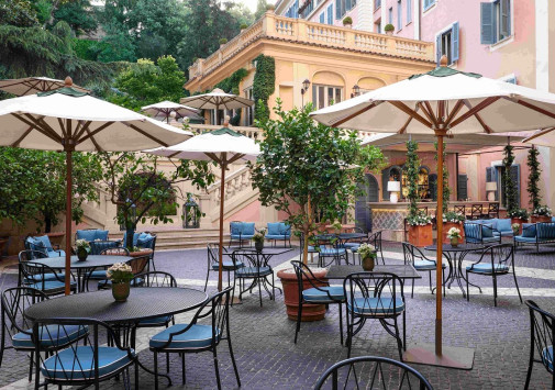 В самом центре Рима, между площадями Испании и Пьяцца-дель-Пополо расположен De Russie, окруженный террасами пышного сада с благоухающими розами, тенистыми соснами и цитрусовыми деревьями. Легендарный отель, построенный в начале XIX века по проекту знаменитого архитектора Джузеппе Валадье, получил свое название благодаря популярности среди русской аристократии, и не только – помимо представителей императорского дома Романовых, здесь бывали Пабло Пикассо и Жан Кокто, Умберто I и Маргарита Савойская. Сегодня отель снова восхищает своих гостей неповторимым сочетанием роскоши, уюта и эксклюзивного сервиса: элегантный интерьер номеров, созданный известным дизайнером Ольгой Полицци, изыски итальянской кухни на живописной террасе ресторана и фирменные коктейли в модном баре «Стравинский», разнообразие процедур в Spa-центре и прекрасные возможности для проведения деловых и торжественных мероприятий. De Russie – «секретный оазис» в сердце Вечного города.