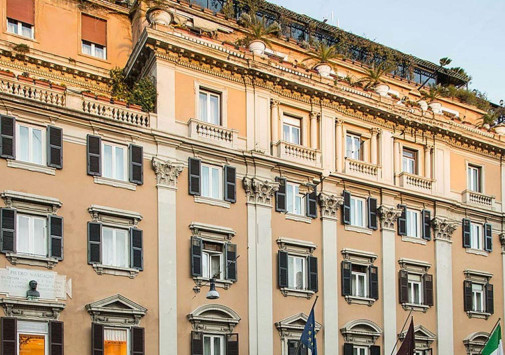 Bulgari Hotel Roma 5* De Russie 5* Eden 5* de Luxe Hassler Roma 5* Hotel De La Ville 5* Hotel Vilon 5* J.K. Place Roma 5* Palazzo Ripetta 5* Portrait Roma 5* Six Senses Rome 5* The First Arte 5* The Rome EDITION 5* Aldrovandi Villa Borghese 5* de Luxe Aleph Hotel Rome 5* Anantara Palazzo Naiadi 5* Babuino 181 Luxury Suites 5* Barberini Roma 4* Bernini Bristol 5* Best Western Premier Hotel Royal Santina 4* Casa Monti Roma 5* Corinthia Rome 5* Degli Artisti 4* Eitch Borromini Palazzo Pamphilj 4* Elizabeth Unique Hotel 5* Fendi Private Suites 5* Forty Seven 4* Grand Hotel Dei Cesari 4* Grand Hotel Palace 5* Grand Hotel Plaza 5* G-Rough 5* Hilton Garden Inn Rome Claridge 4* Hotel Dei Borgognoni 4* Hotel Dei Mellini 4* Hotel d'Inghilterra 5* Hotel Lord Byron 5* Indigo Rome - St. George 5* InterContinental Rome Ambasciatori Palace 5* de Luxe La Griffe Roma 5* Le Meridien Visconti Rome 4* Leon’s Place 4* Majestic Roma 5* Margutta 54 Luxury Suites 5* Mario de' Fiori 37 5* Marriott Grand Hotel Flora 4* Martis Palace Hotel 4* Orient Express La Minerva 5* Palazzo Dama 5* Palazzo Delle Pietre - Luxury Apartments 5* Palazzo Shedir 5* Palazzo Talia 5* Parco dei Principi Grand Hotel & Spa 5* Radisson Collection Hotel, Roma Antica 5* Regina Hotel Baglioni 5* Rocco Forte House 5* Roma Luxus Hotel 5* Rome Cavalieri Waldorf Astoria 5* de Luxe ROMEO Roma 5* Rose Garden Palace Roma by OMNIA hotels 4* Singer Palace Hotel 5* Sofitel Rome Villa Borghese 5* Splendide Royal 5* Stendhal Hotel 4* The First Dolce 5* The First Musica 5* The St. Regis Rome 5* The Westin Excelsior, Rome 5* UNAWAY Hotel Empire Roma 4* Villa Agrippina Gran Melia 5* Villa Spalletti Trivelli 5* de Luxe