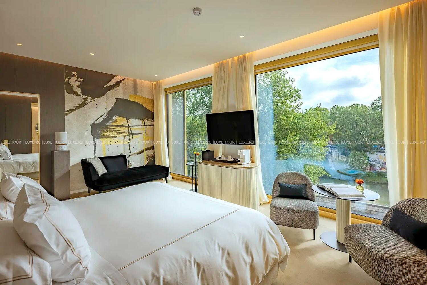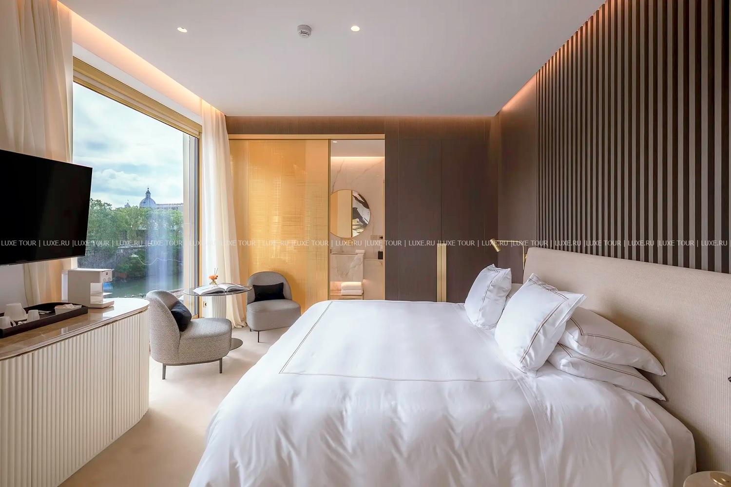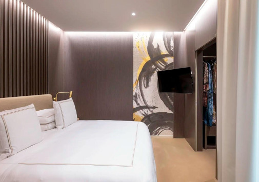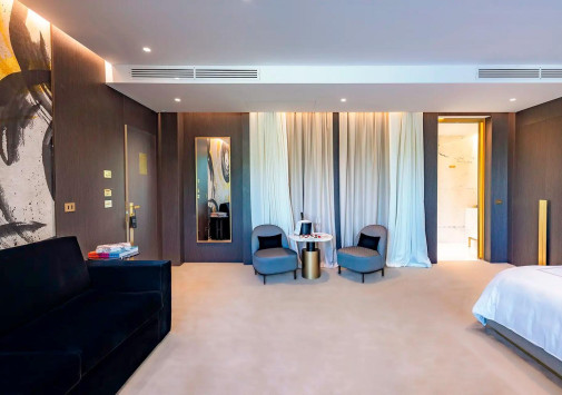 The First Musica расположен на берегу Тибра в престижном районе Прати, всего в нескольких минутах ходьбы от Ватикана. Элегантный бутик-отель идеально вписан в атмосферу этого исторического места, известного не только историческими достопримечательностями, но и дизайнерскими бутиками, модными барами и изысканными ресторанами. Обновленное здание отеля выделяется среди старинных палаццо своим кубистским фасадом с огромными окнами, из которых открывается потрясающий вид на зеркальную гладь Тибра и Вечный город. Три верхних этажа, включая террасу на крыше, занимают гастрономический ресторан Alto, предлагающий деликатесы из морепродуктов, и бар, где можно отдохнуть за коктейлем, любуясь римскими пейзажами под музыку диджейских сетов. Музыкальная тематика превалирует и в концепции отеля – от деталей интерьера и авангардных настенных росписей в стильных номерах до самого названия The First Musica.