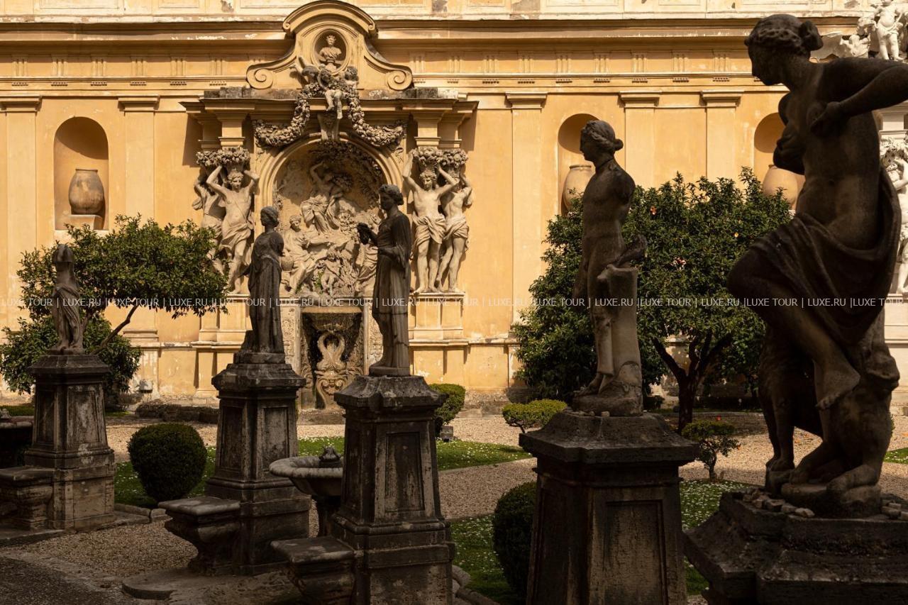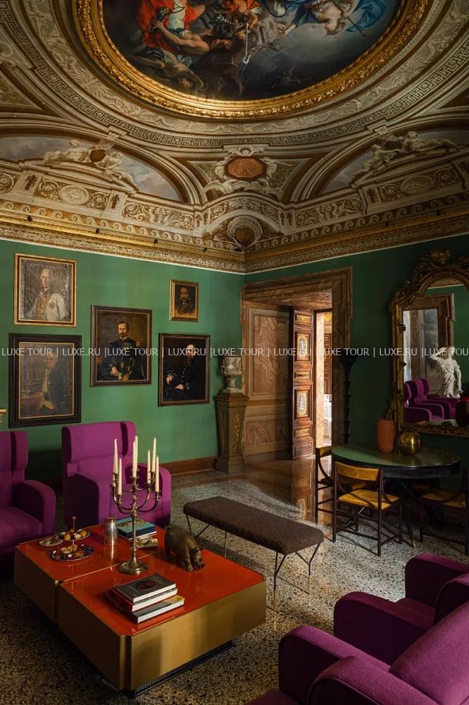 Для гостей – 4 роскошных исторических зала для различных мероприятий (Зал Перил XVII века (100 м2) – с фресками, ажурными перилами и видом на Тибр, Зеркальная галерея (87 м2) – с барельефами, золотой лепниной и оригинальными фламандскими зеркалами XVI века, и элегантные салоны Венеры (58 м2) и Дианы (52 м2)), Wi-Fi, парковка, услуги дворецкого, услуги прачечной.