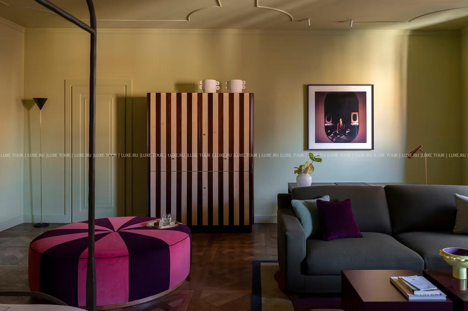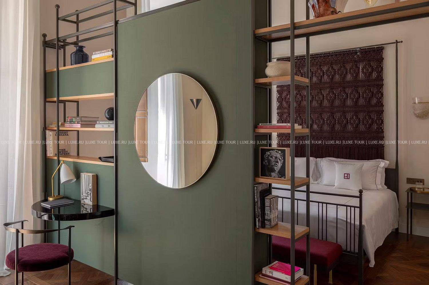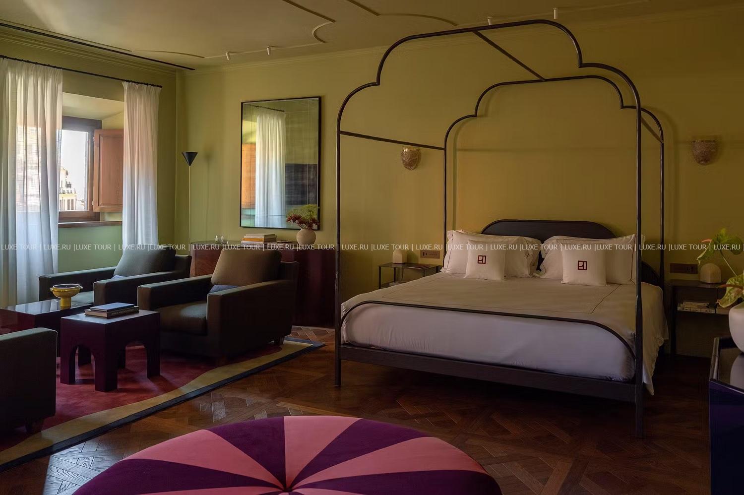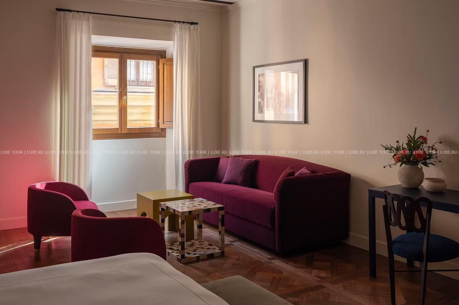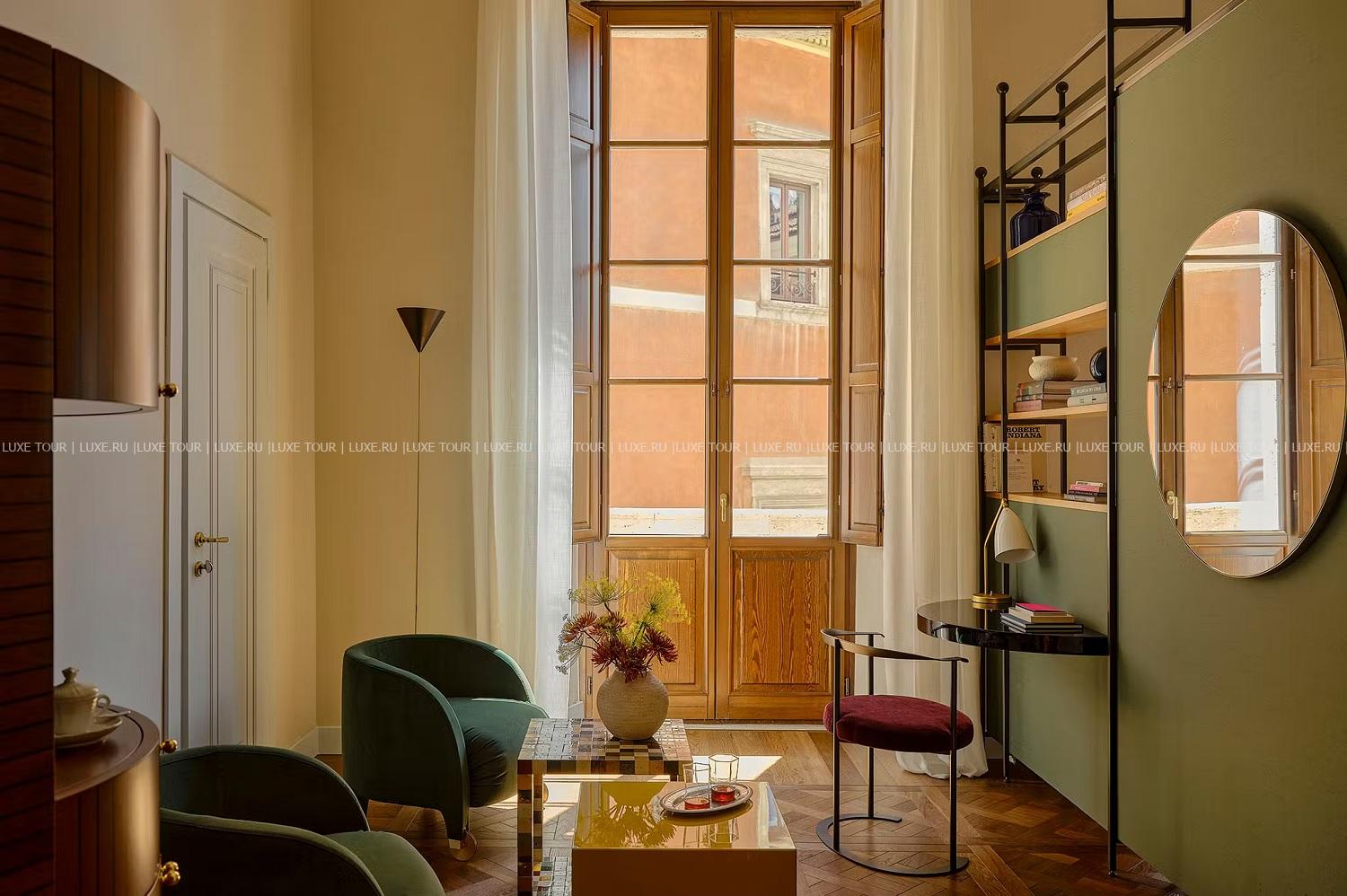 В историческом сердце Вечного города, рядом с базиликой Сант-Андреа-делле-Фратте, Испанской лестницей и фонтаном Треви находится Palazzo Talia. История палаццо уходит в глубину веков: в XVII столетии дворец принадлежал кардиналу Назарено, затем здесь была открыта школа, которая в XVIII-XIX вв. стала престижным учебным заведением для сыновей европейской аристократии. В здании появились новые галереи и залы, украшенные потрясающими фресками, очаровательный сад во внутреннем дворе и собственный театр. Сегодня в палаццо разместился отель, названный в честь Талии, музы комедии – элегантной, легкой и изящной. Теперь сценические декорации преобразованы в эклектичные интерьеры, балансирующие между великолепием барокко и авангардным дизайном, а магия театра – в искусство гостеприимства Palazzo Talia.
