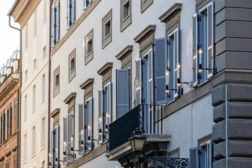 - 187 м2. Фешенебельный номер с отделкой из эбенового дерева состоит из двух спален с кроватью king-size и дизайнерским камином, гостиной с обеденной зоной, мини-кухни, фитнес-зоны с тренажером, двух ванных комнаты с ванной и паровым душем. просторной террасы с зоной отдыха, обеденной зоной, садом и панорамным видом на исторический центр Рима. Номер расположен на 5 этаже.