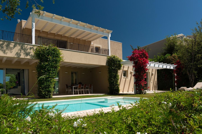- 230 м2, общая площадь сада 900 м2. Роскошная двухуровневая вилла, окруженная садами, оформлена в современном стиле с сардскими декоративными элементами. К услугам гостей 3 спальни, 4 ванные комнаты, просторная гостиная с обеденной зоной и кухня, бассейн, частный сад, веранда 85 м2 и уединенная пергола.
