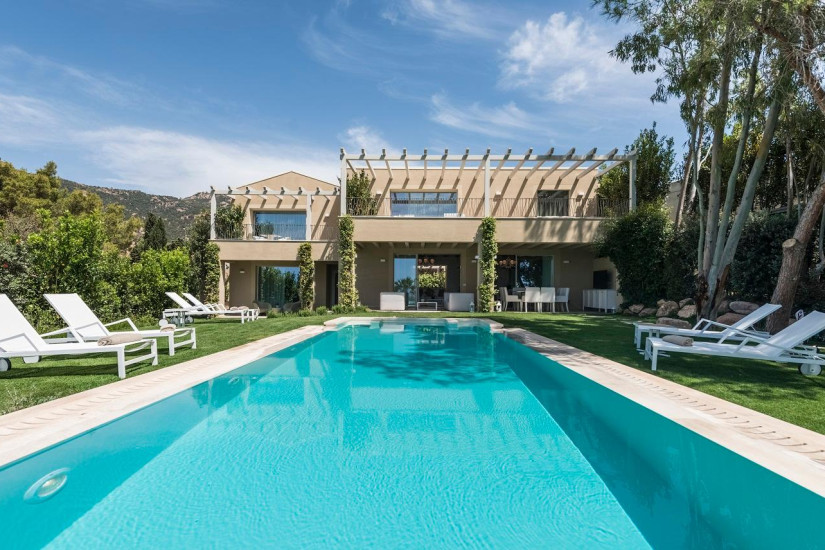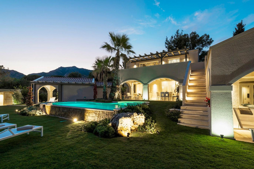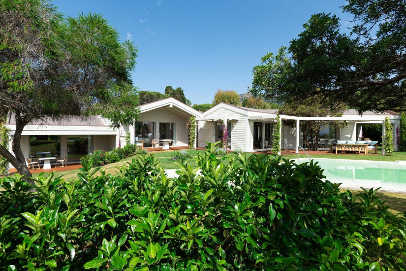 - 270 м2. Роскошная двухуровневая вилла, окруженная садами, оформлена в современном стиле с сардскими декоративными элементами. На нижнем уровне расположены две спальни с кроватями queen-size, в каждой из них ванная комната с ванной, душем и гардеробной, так же гостиная с видом на сад, столовая с зоной на открытом воздухе с зоной для барбекю, кухня, терраса, просторный бассейн, частный сад. На верхнем уровне расположены две спальни с двумя кроватями queen-size, две ванные комнаты, терраса с видом на море. К услугам гостей дворецкий и личный шофер.