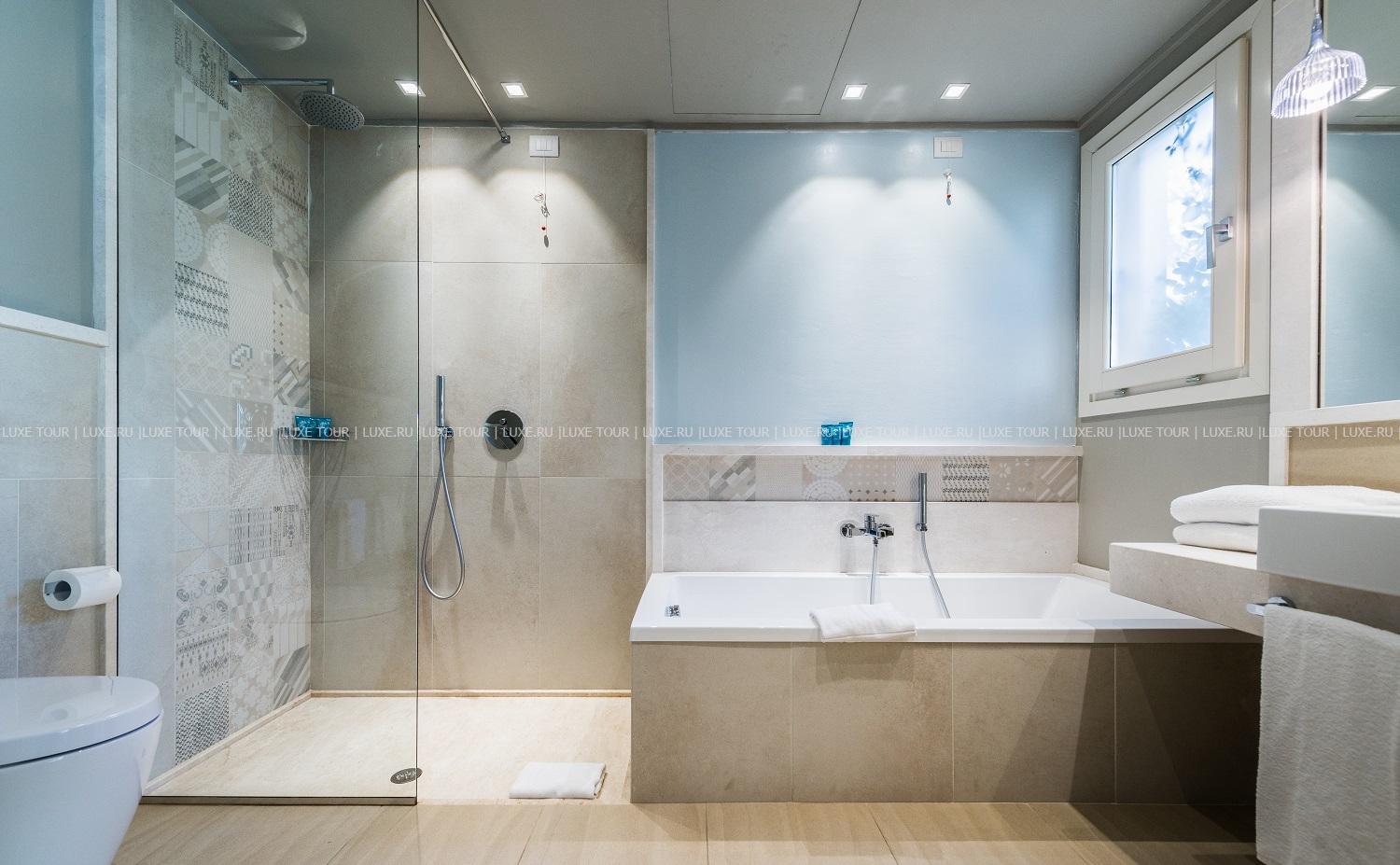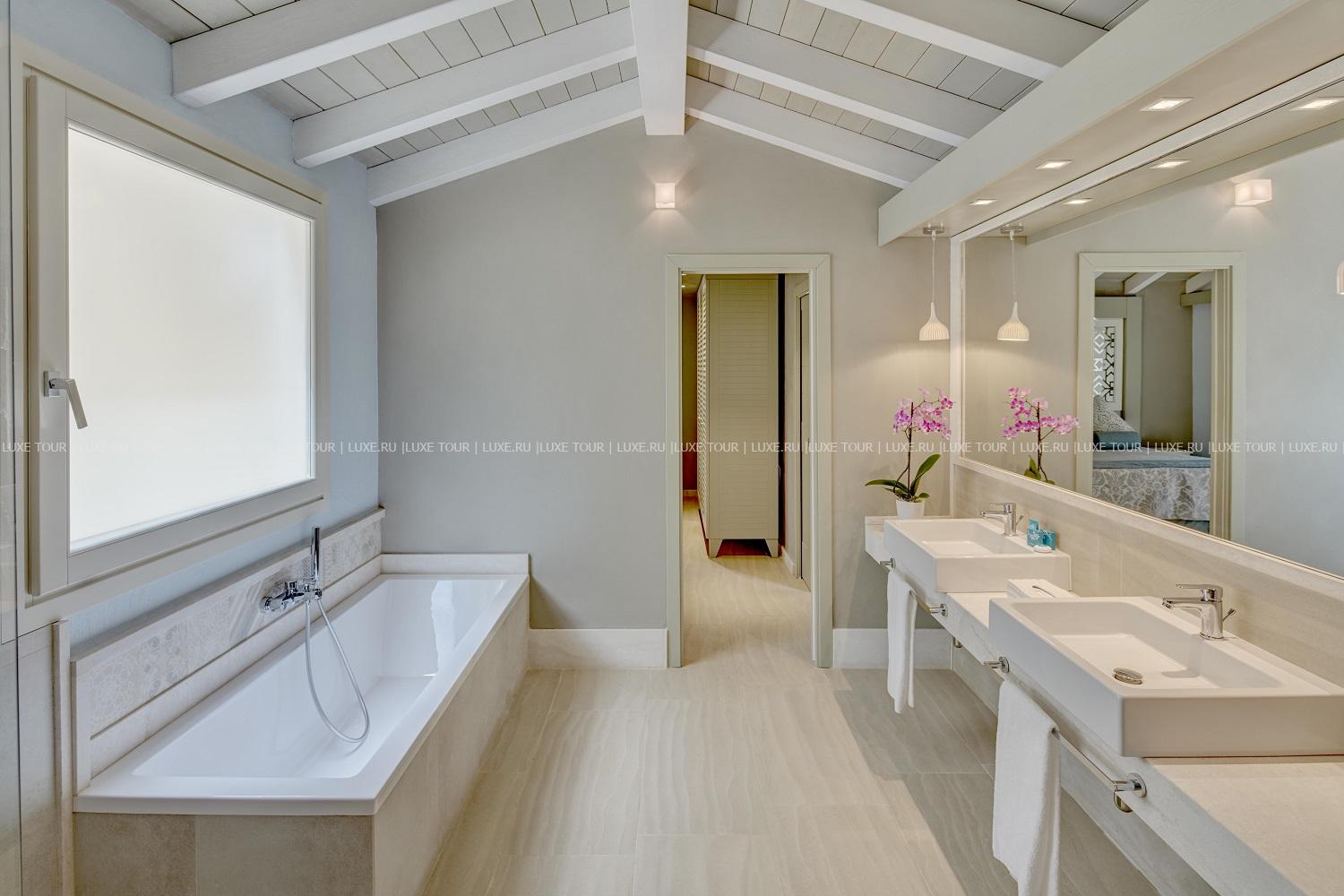 Рядом расположен открытый бассейн, также можно посещать и большинство других бассейнов Forte Village.