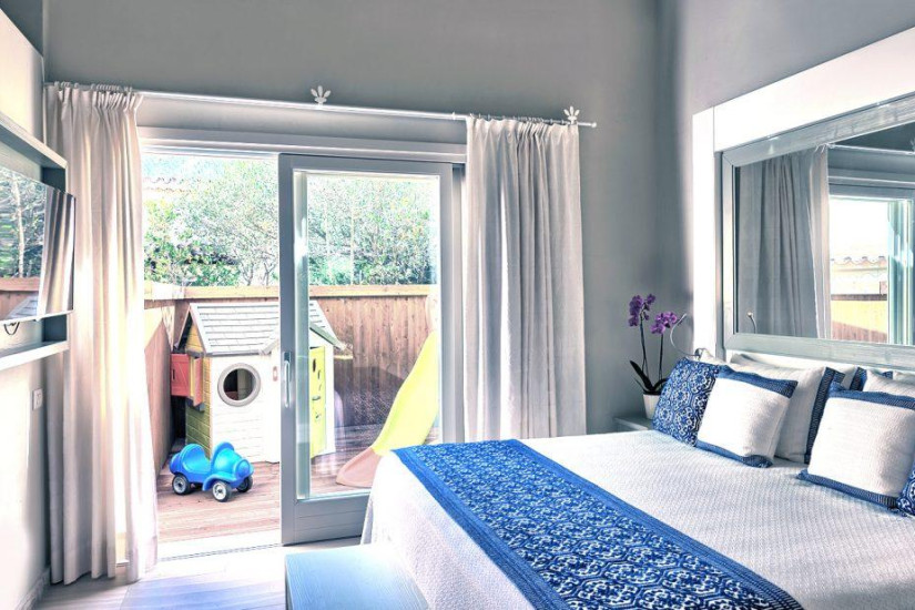 - 31 м2. Состоит из из спальни с двуспальной кроватью, гостиной с двумя раскладывающимися кроватями, ванной комнаты с ванной и небольшого внутреннего дворика. Бунгало выходит в отдельный сад, оборудованный игрушками для детей и окруженный красивым деревянным забором