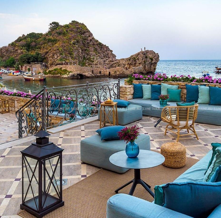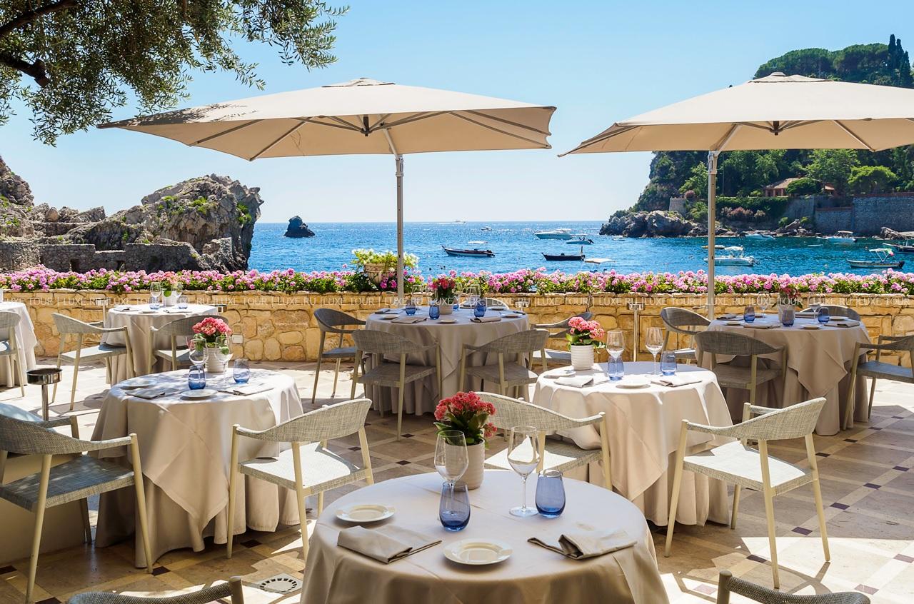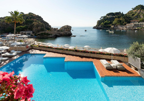 Mazzaro Sea Palace расположен в нескольких шагах от фуникулера, ведущего в исторический центр Таормины, рядом с пляжем в красивейшем заливе Маццаро, панорамный вид на который открывается в отеле отовсюду: с балконов элегантных номеров, из лазурного бассейна, с террас гастрономического ресторана и уютного бара. Также этот небольшой очаровательный отель предлагает своим гостям Spa-салон, круглосуточный фитнес-центр, великолепный зал для всевозможных мероприятий и увлекательные экскурсии по сицилийским и окрестным достопримечательностям. Mazzaro Sea Palace – идеальный выбор для комфортного отдыха и знакомства с древней Таорминой.