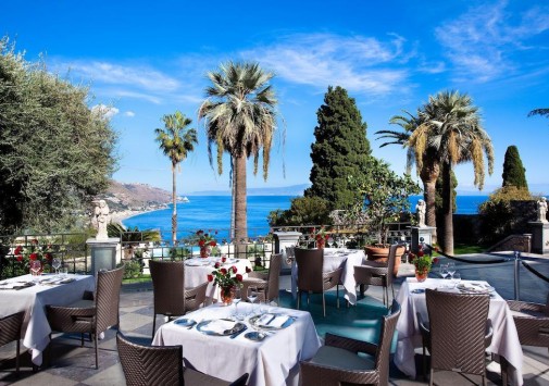 • Бар на панорамной террасе на крыше, откуда открывается потрясающий вид на море и Таормину, – прекрасное место для аперитива или вечернего коктейля.