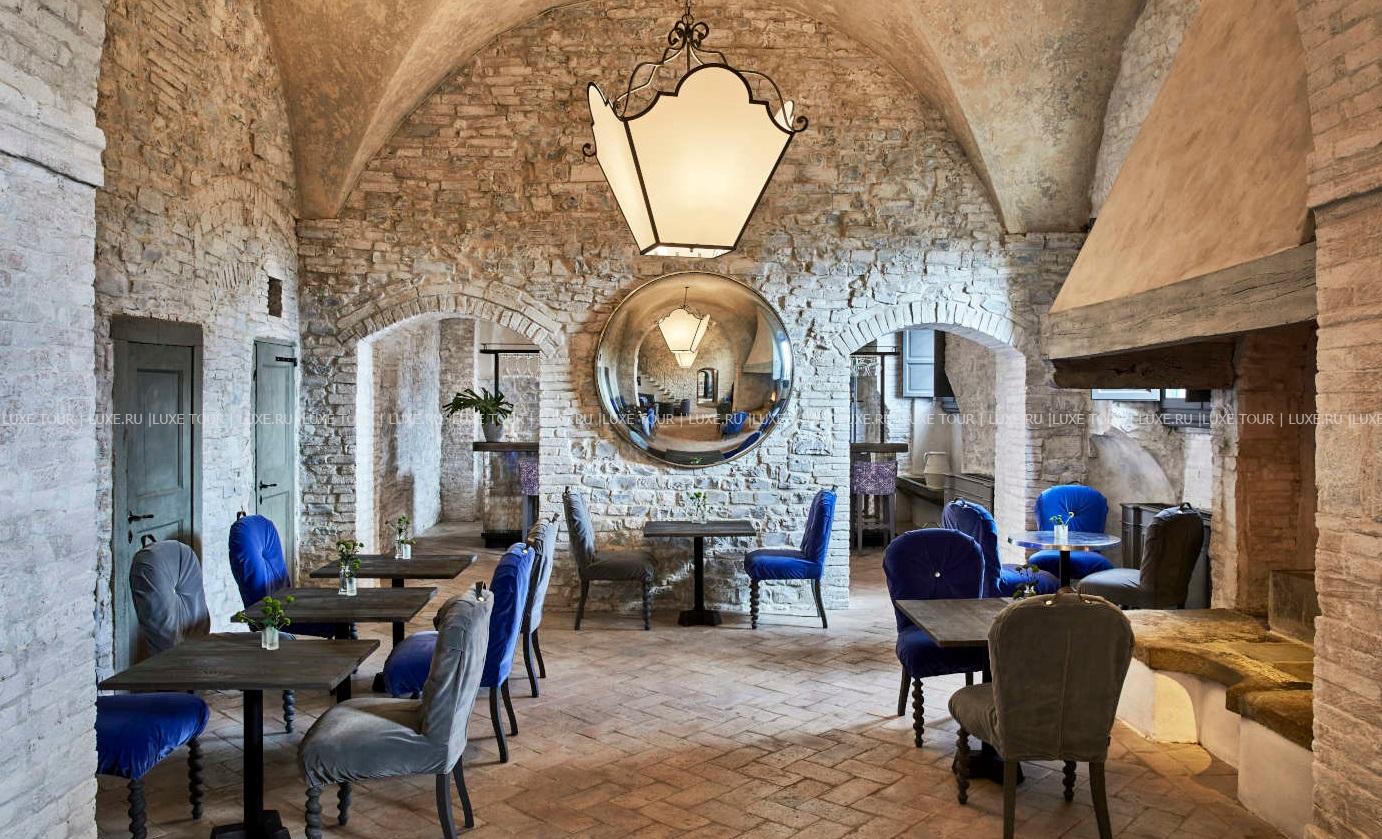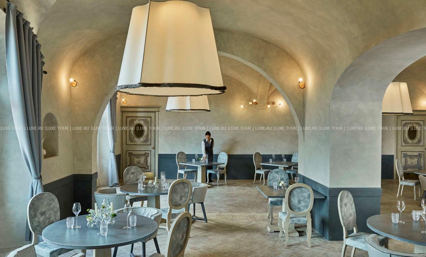 • Гастрономический ресторан La Torre, награжденный звездой Мишлен и расположенный под сводами старинного зала, предлагает сезонные деликатесы тосканской кухни, в которые добавляются свежайшие ингредиенты из органического сада отеля. Летом насладиться превосходными блюдами можно на террасе с панорамным видом на виноградники.