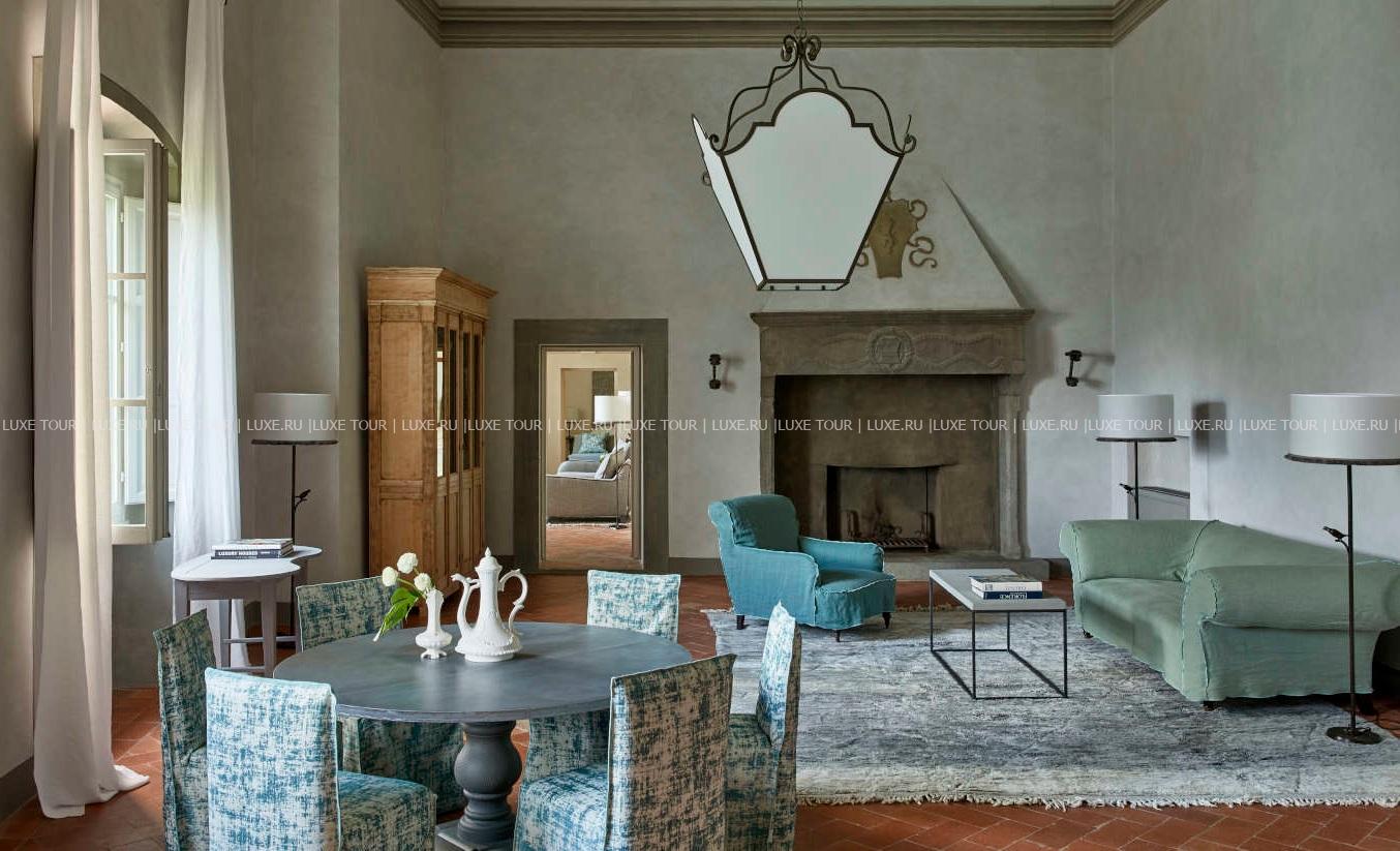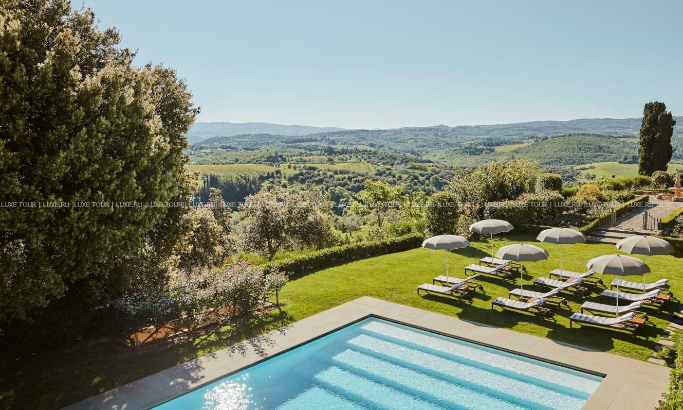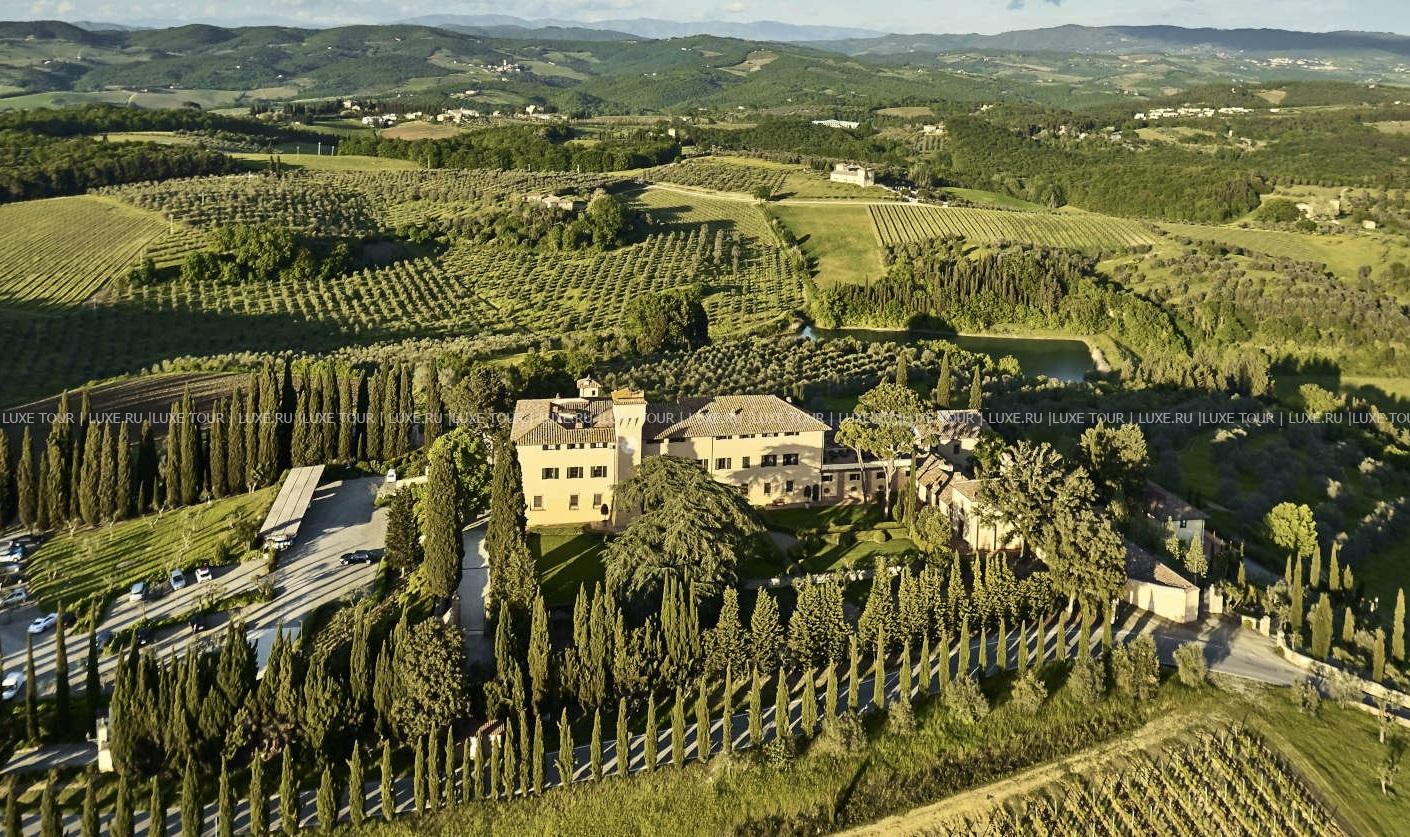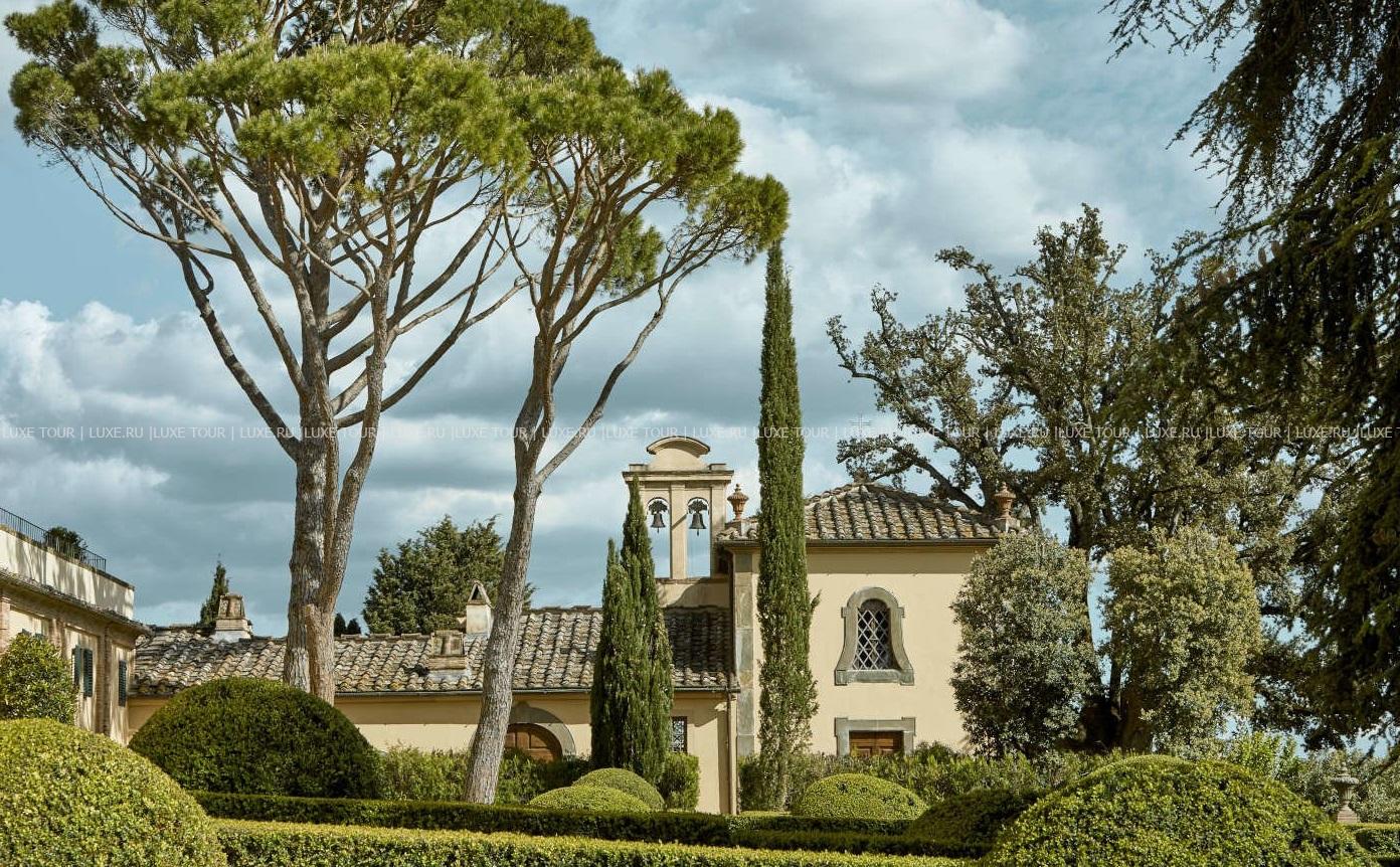 Для гостей – 3 зала дл деловых и торжественных мероприятий, терраса для мероприятий на открытом воздухе, бесплатный Wi-Fi, парковка, аренда машин и мотороллеров Vespa, бесплатный шаттл до/из Флоренции и Сиены, вертолетная площадка, услуги консьержа, услуги прачечной.