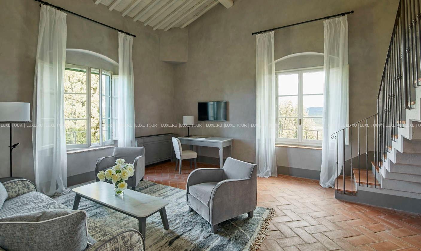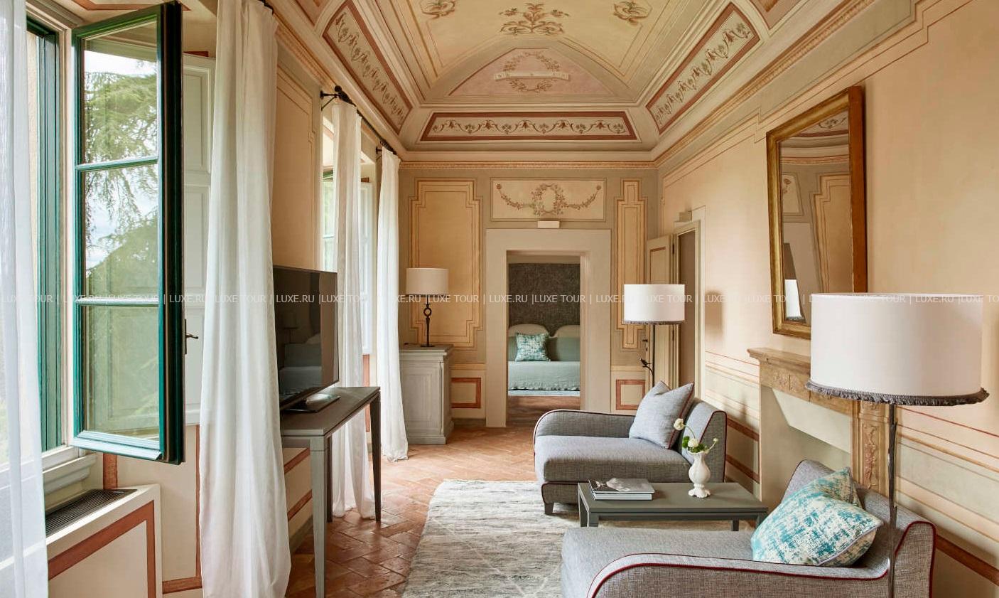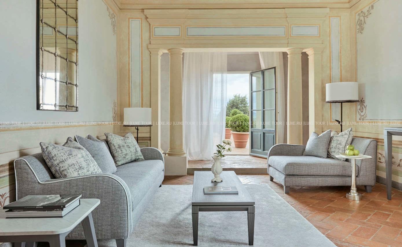 Для гостей – 3 зала дл деловых и торжественных мероприятий, терраса для мероприятий на открытом воздухе, бесплатный Wi-Fi, парковка, аренда машин и мотороллеров Vespa, бесплатный шаттл до/из Флоренции и Сиены, вертолетная площадка, услуги консьержа, услуги прачечной.