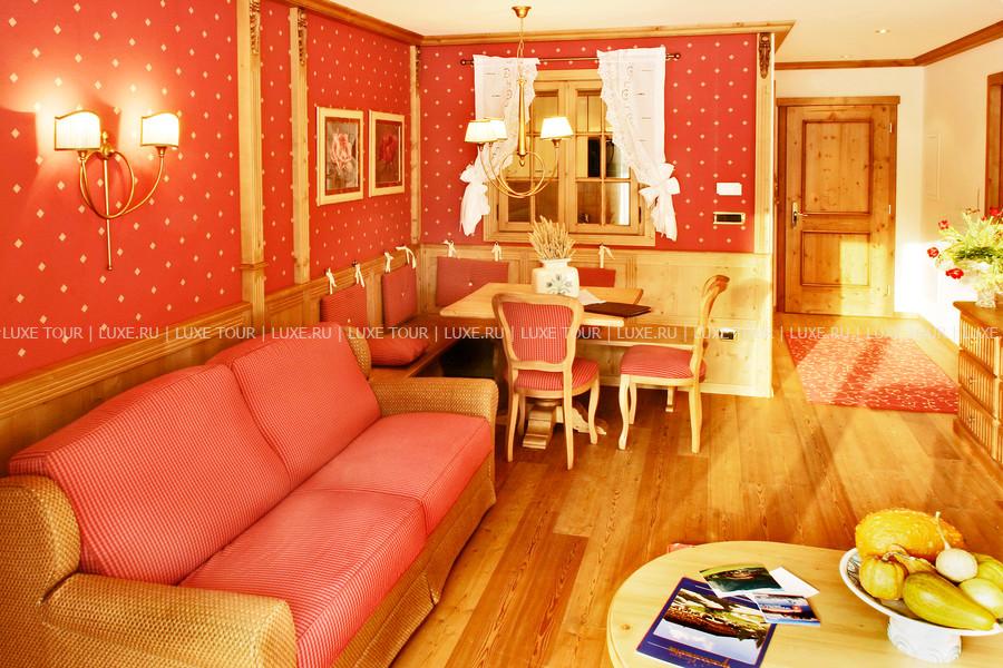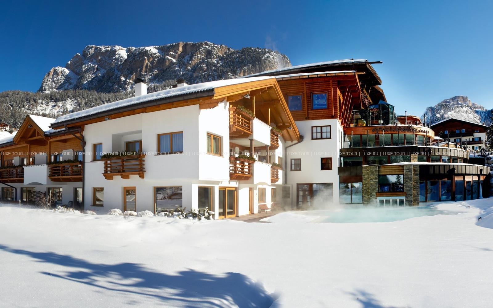 Расположенный среди живописных альпийских пейзажей, Granbaita Dolomites является современным элегантным отелем с уютными комфортабельными номерами, отделанными деревом, Центром здоровья с бассейном, сауной и турецкой баней, изысканным рестораном, предлагающим разнообразие традиционных блюд итальянской кухни и большой выбор вин из собственного винного погреба, и многообразием спортивных мероприятий. Удобное расположение, близость к горнолыжным спускам, чудесная природа и атмосфера гостеприимного комфорта делают отдых в Granbaita Dolomites приятным для всей семьи.