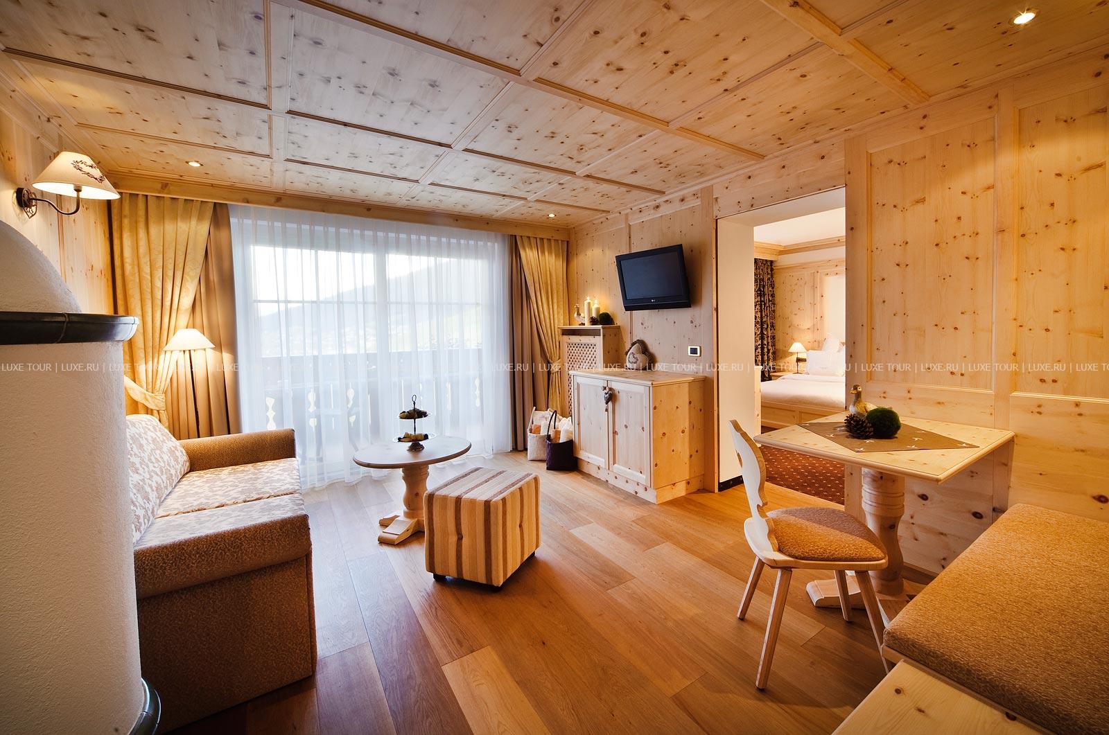 - В винном погребе отеля хранится эксклюзивная коллекция, включающая более 200 изысканных вин, произведенных в Южном Тироле, а также других областях Италии и других стран.