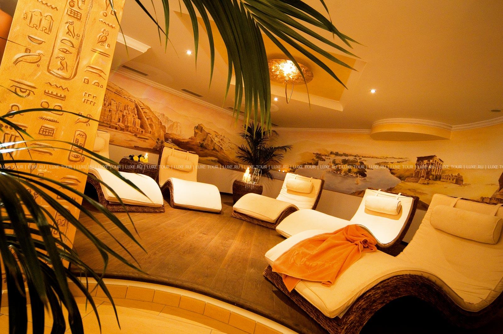 Отель располагает роскошным комплексом Wellness & Spa Cleopatra площадью более 1000 м2, выполненном в египетском стиле, занимающим два этажа и включающим: крытый подогреваемый бассейн, новый открытый подогреваемый бассейн с массажными сиденьями и панорамным видом на Доломитовые Альпы, крытую гидромассажную ванну, открытую горячую гидромассажную ванну в саду, ароматическую био-сауну, финскую сауну «Глаз Хора», турецкую баню «Тутанхамон», соляную сауну с гималайской солью, панорамную сауну в саду, восточную баню «Расул», тирольскую сауну, отделанную европейским кедром, ароматические души, зону отдыха, комнату тишины с панорамными окнами и видом на горы, альпийский сад с зоной для принятия солнечных ванн. Центр красоты представляет широкий выбор процедур и программ по уходу за телом и лицом, основанных на восточных и западных методиках и с использованием косметических средств ведущих европейских брендов. Также в комплексе работает фитнес-центр с панорамным видом на доломитовую скалу Сассолунго, предлагаются занятия фитнесом, аква-аэробикой.