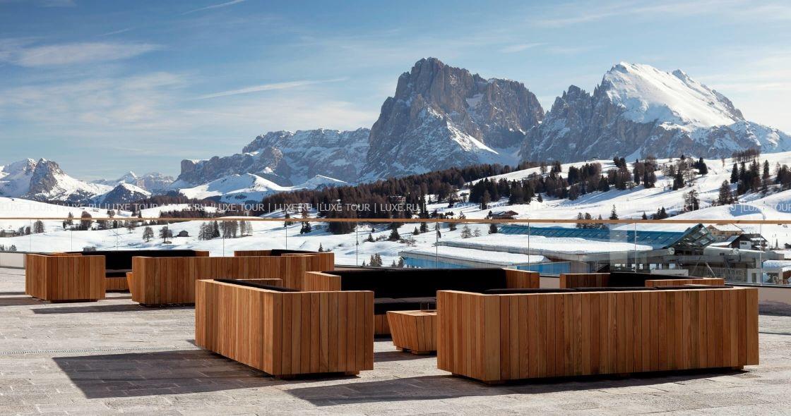 - В лаундже-баре с солнечной террасой и панорамным видом на Доломиты подают ароматные травяные чаи с выпечкой и десертами.