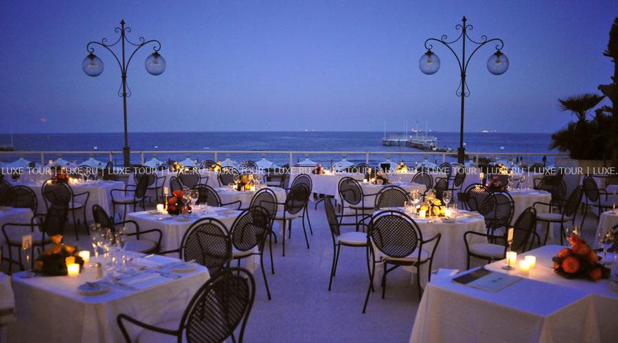 - В стильном баре Blue с открытой террасой приятно отдохнуть за аперитивом или фирменным коктейлем Excelsior Spritz.