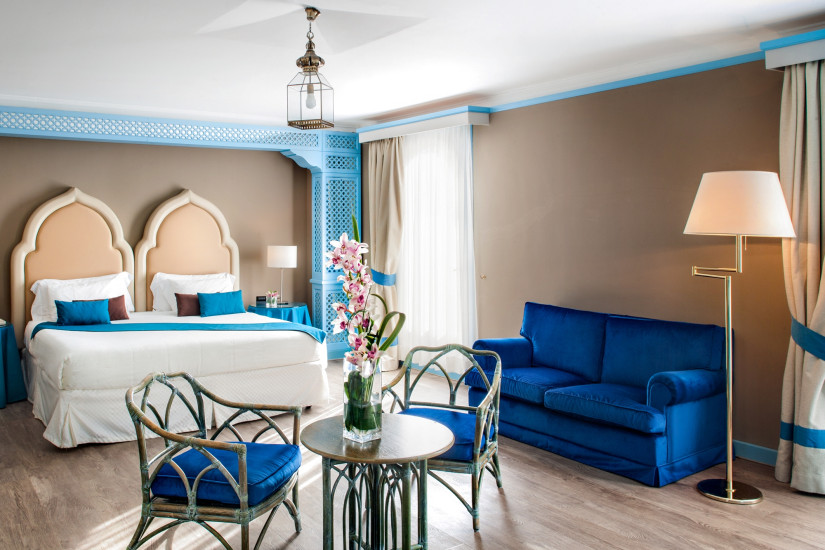 - В отеле 197 номеров различных категорий, включая 174 Guest Rooms, 8 Junior Suites и 15 Suites. Роскошные интерьеры номеров навеяны мавританскими мотивами, а из окон открывается чудесный вид на море, лагуну, парк и мавританский дворик с фонтаном.