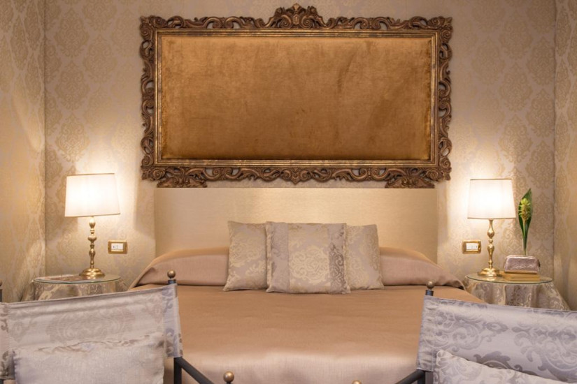 - 30 м2. Номера с великолепным индивидуальным декором состоит из спальни с двуспальной кроватью или двумя кроватями twin, гостиной (в некоторых номерах с камином), ванной комнаты с ванной и окном. Панорамный вид на Венецианскую лагуну и остров Сан-Джорджо. Номера расположены в центральной части здания.