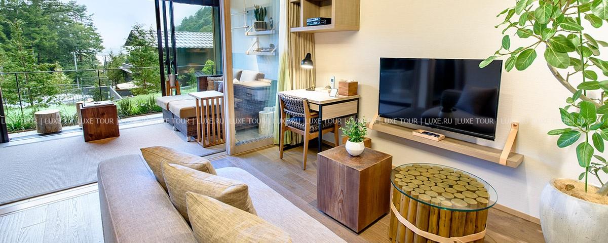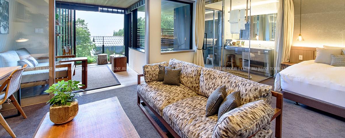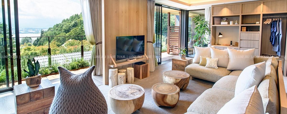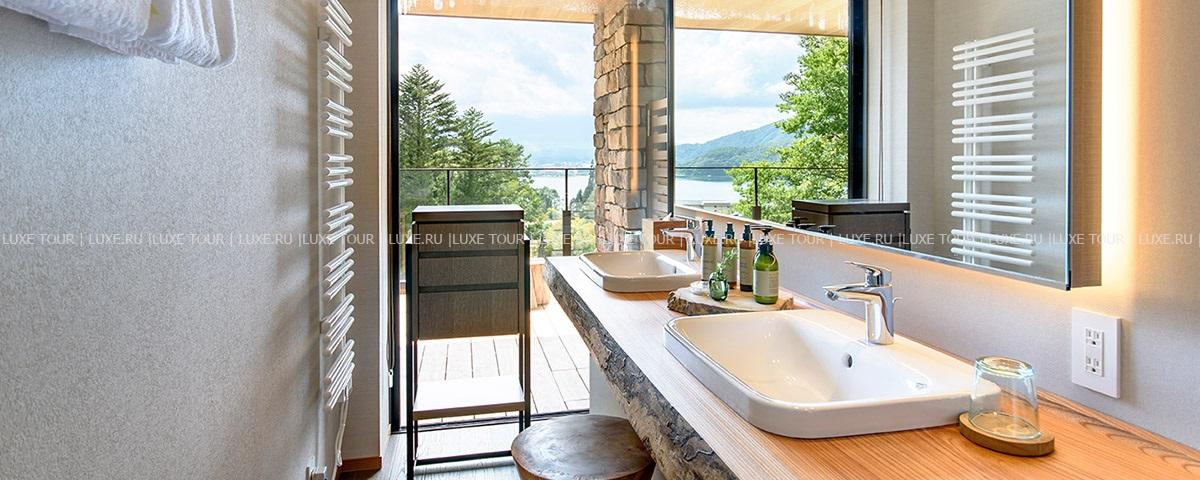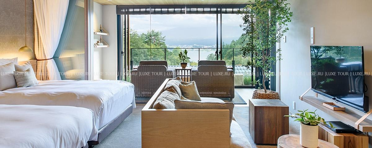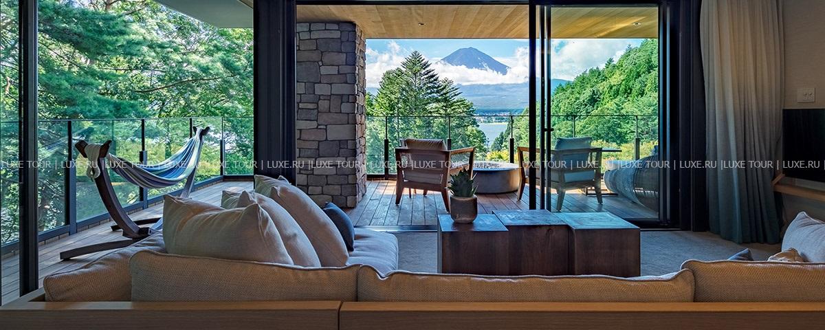 Fufu Kawaguchiko расположен в красивейшем месте – среди густых лесных зарослей, на берегу живописного озера Кавагутико, над которым возвышается легендарная гора Фудзи. Чарующий вид на окружающие пейзажи открывается в бутик-отеле отовсюду, и любоваться им гости могут из панорамных окон и с террас стильных номеров, наслаждаясь деликатесами японской кухни в элегантном ресторане, потягивая вино или саке в уютном баре, расслабляясь в центре Spa by Sisley или в ваннах с целебной водой из местного термального источника. Fufu Kawaguchiko – симбиоз современной роскоши, древних традиций и уникальной природы Японии.