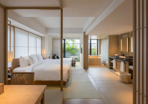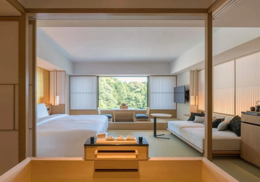 Banyan Tree Higashiyama Kyoto разместился в бамбуковом лесу рядом с легендарным храмом Киёмидзу-дэра, на вершине холма, откуда открывается живописный вид на древнюю столицу Японии. Отель, утопающий в буйной зелени сада, гармонично сочетает современный дизайн и аутентичные японские традиции – от стильных номеров с ваннами «онсен» и собственного термального источника до ресторана, предлагающего деликатесы местной кухни, богатой коллекции саке в уютном баре, неспешных чайных церемоний и представлений театра «но» на сцене Бамбукового павильона. Banyan Tree Higashiyama Kyoto – городской курорт в уединенном природном уголке Киото.