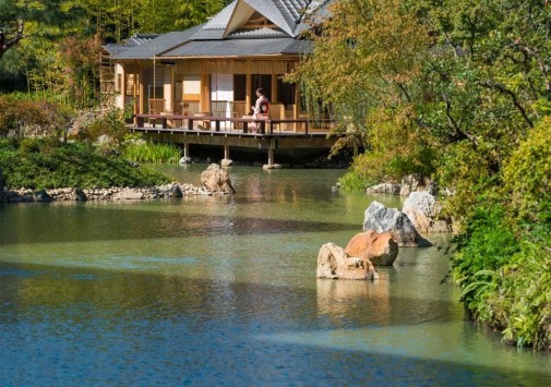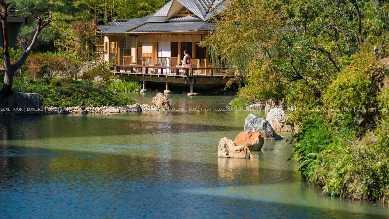 • В чайном домике Shakusui-tei, расположенном в пышном саду, подают ароматный японский чай, саке, шампанское, а также устраиваются чайные церемонии.
