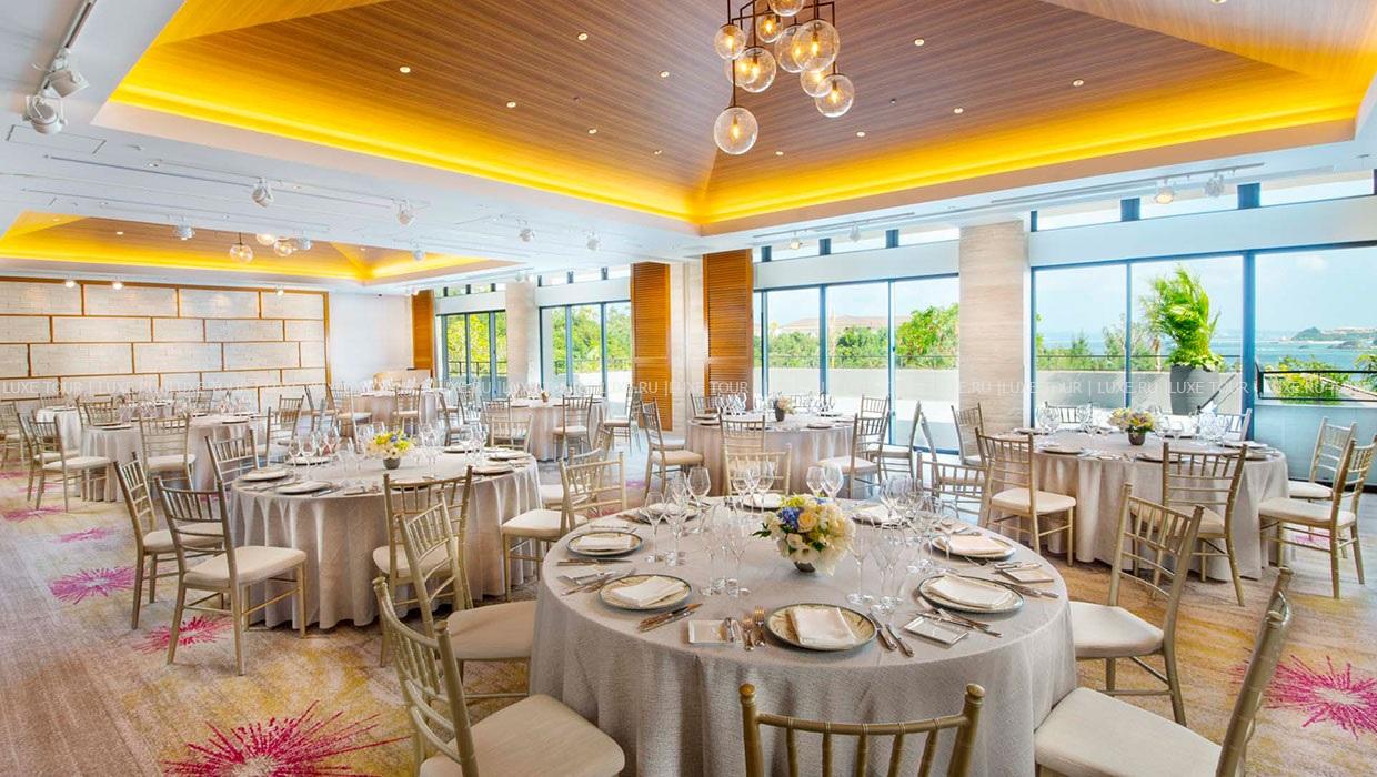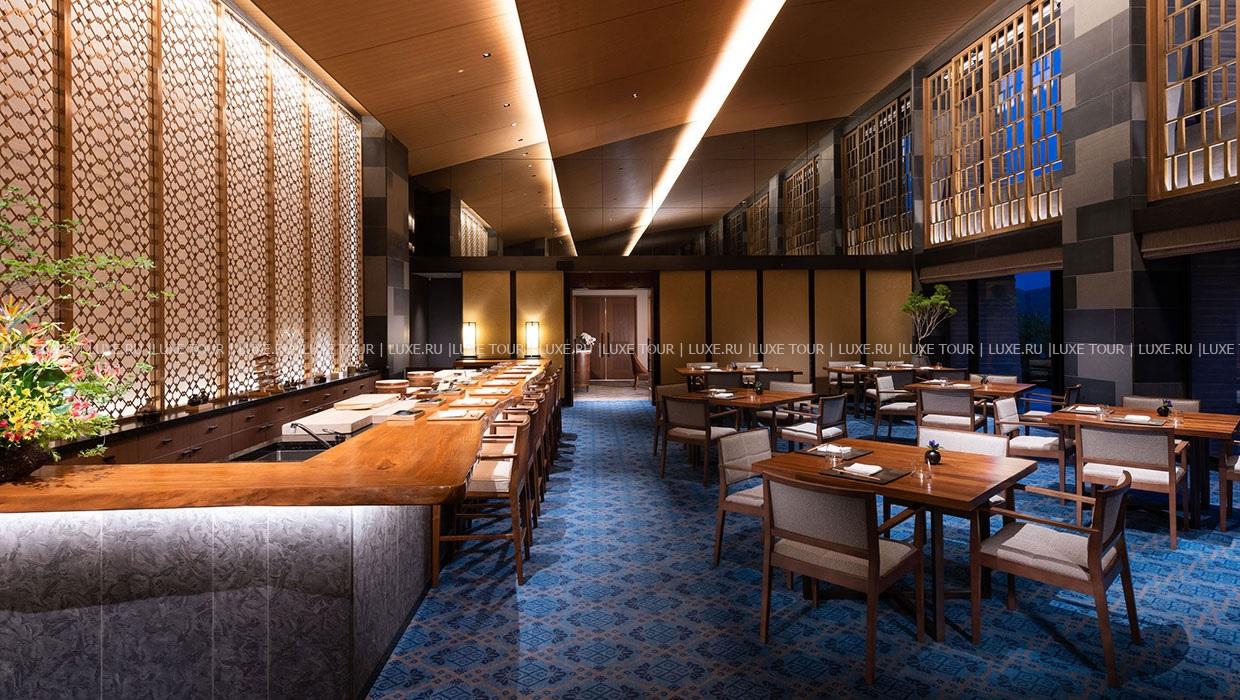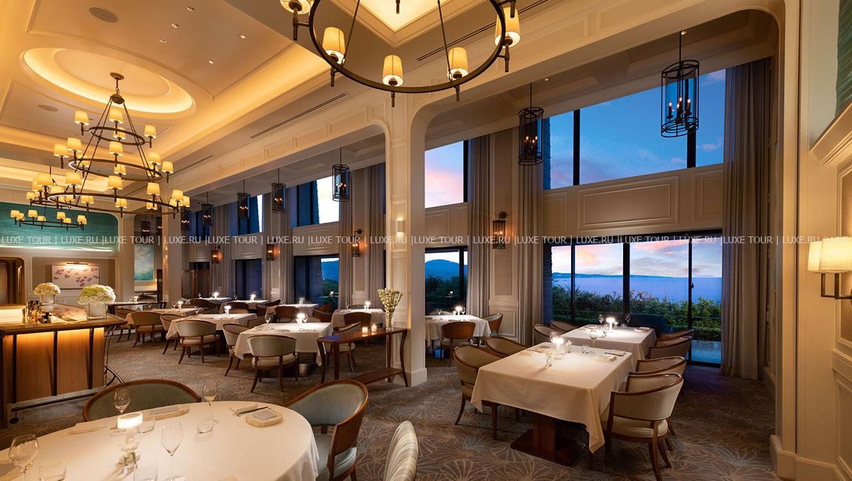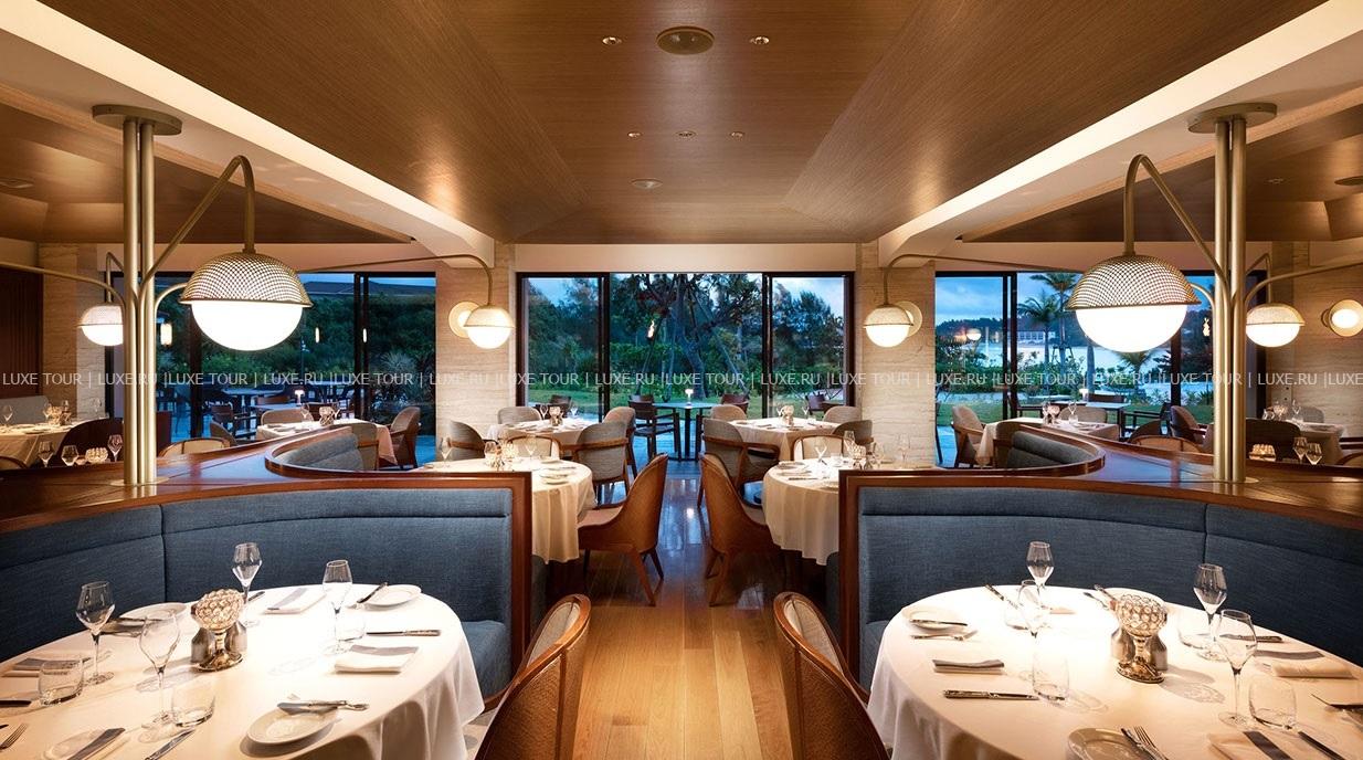 - Гастрономический ресторан Shiroux, название которого означает «белый», подразумевая вид на белоснежный пляж и пенящиеся морские волны, представляет деликатесы высокой кухни от шеф-повара Хироясу Каватэ, удостоенного двух звезд Мишлен.