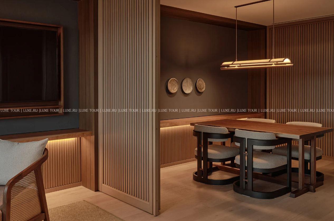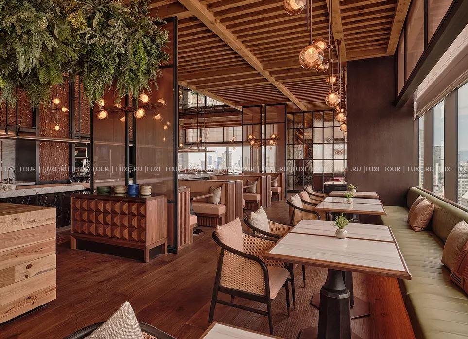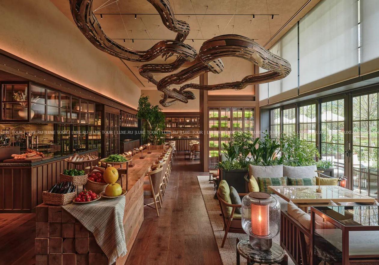 - Интерьер гастрономического ресторана P72 украшает оригинальная инсталляция в виде корней дерева, с террасы открывается вид на чудесный сад, а кухня основана на 72 микро-сезонах японского календаря и использовании свежих сезонных продуктов.