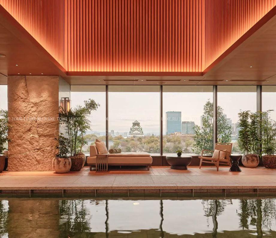 Отель располагает первоклассным центром Patina Spa площадью 1400 м2, в котором имеются: крытый 20-метровый бассейн с подогревом, гидромассажной зоной и панорамным видом на замок Осаки, инфракрасная сауна, зона отдыха и процедурные кабинеты, где предлагается широкий спектр процедур – от криотерапии, LED-терапии и гипербарической кислородно-водородной терапии до различных массажей и косметологических процедур с инновационными средствами премиальных брендов Oskia и Sophistanc.