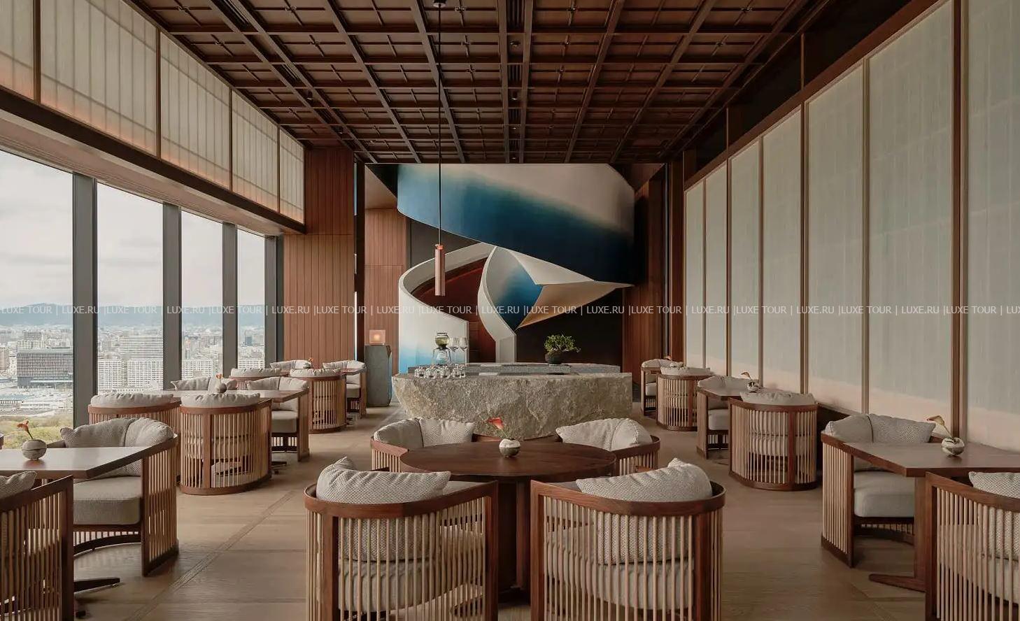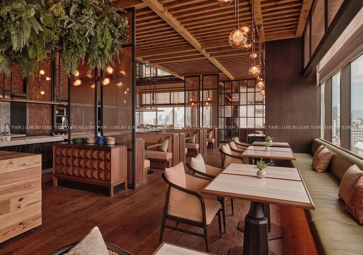 - В уютном лаундже Nijiri с видом на город подают послеобеденный чай с десертами, вино, саке и деликатесные закуски.