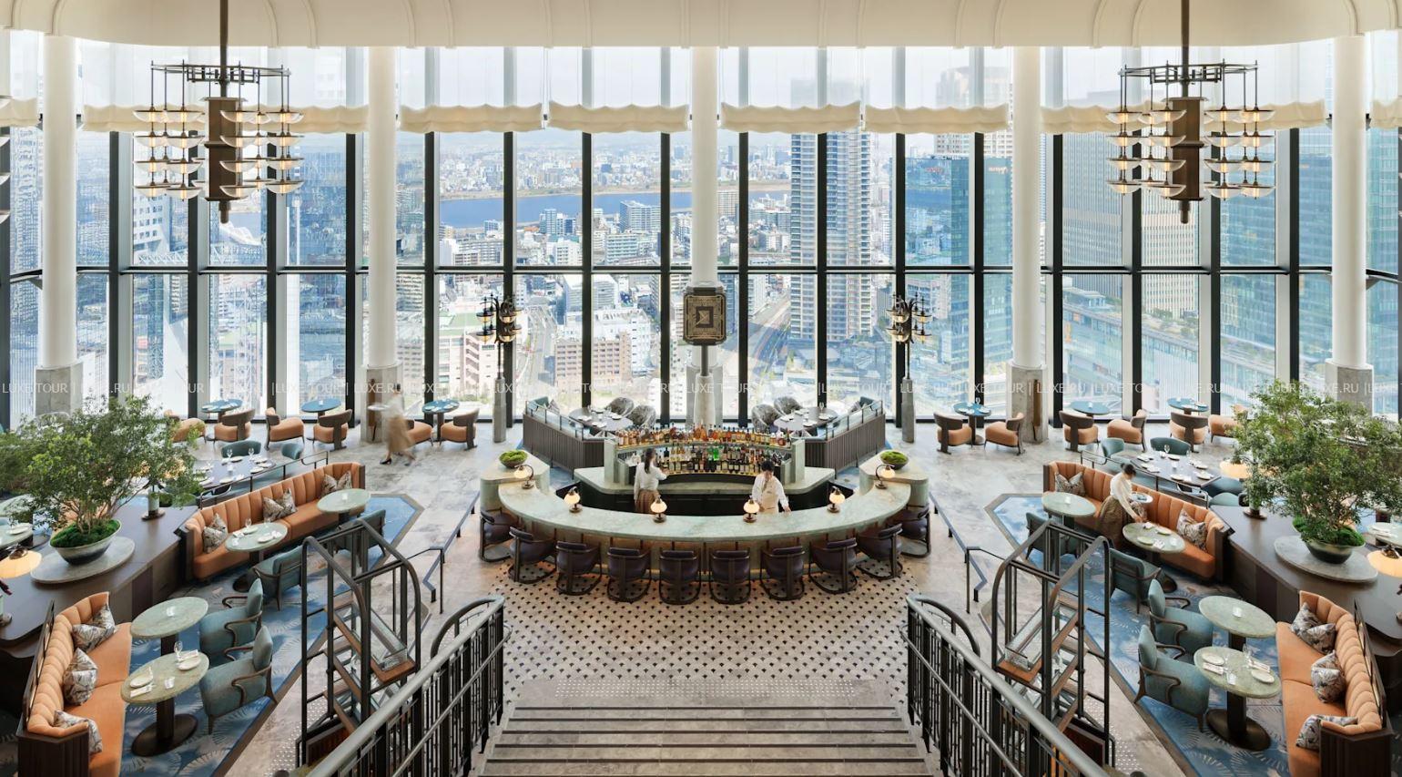 - Элегантный двухуровневый лаундж Peacock Alley с панорамными окнами и потрясающим видом на Осаку предлагает широкий выбор напитков премиум-класса и изысканных закусок, послеобеденный чай с десертами и живую музыку в уикенд.