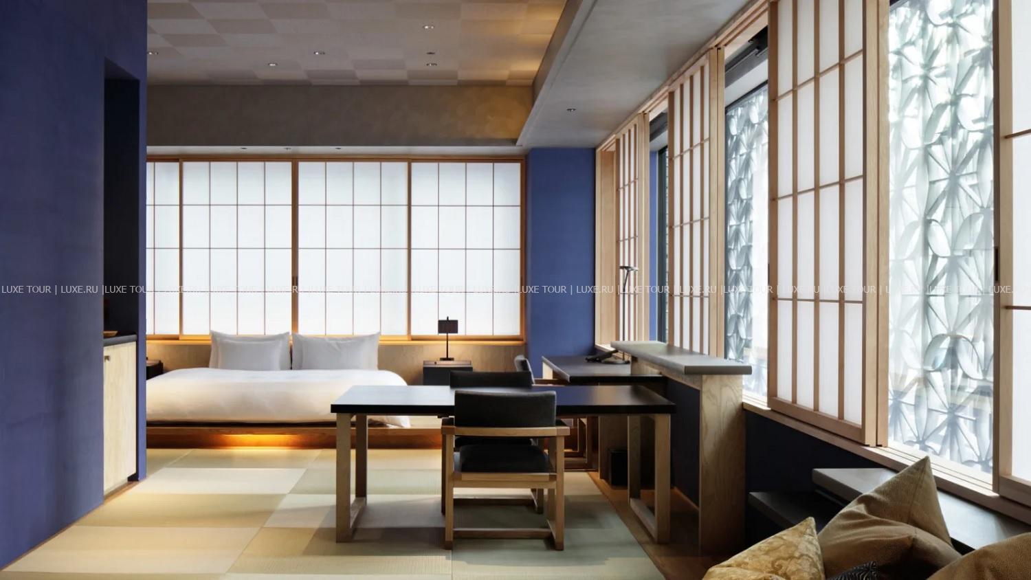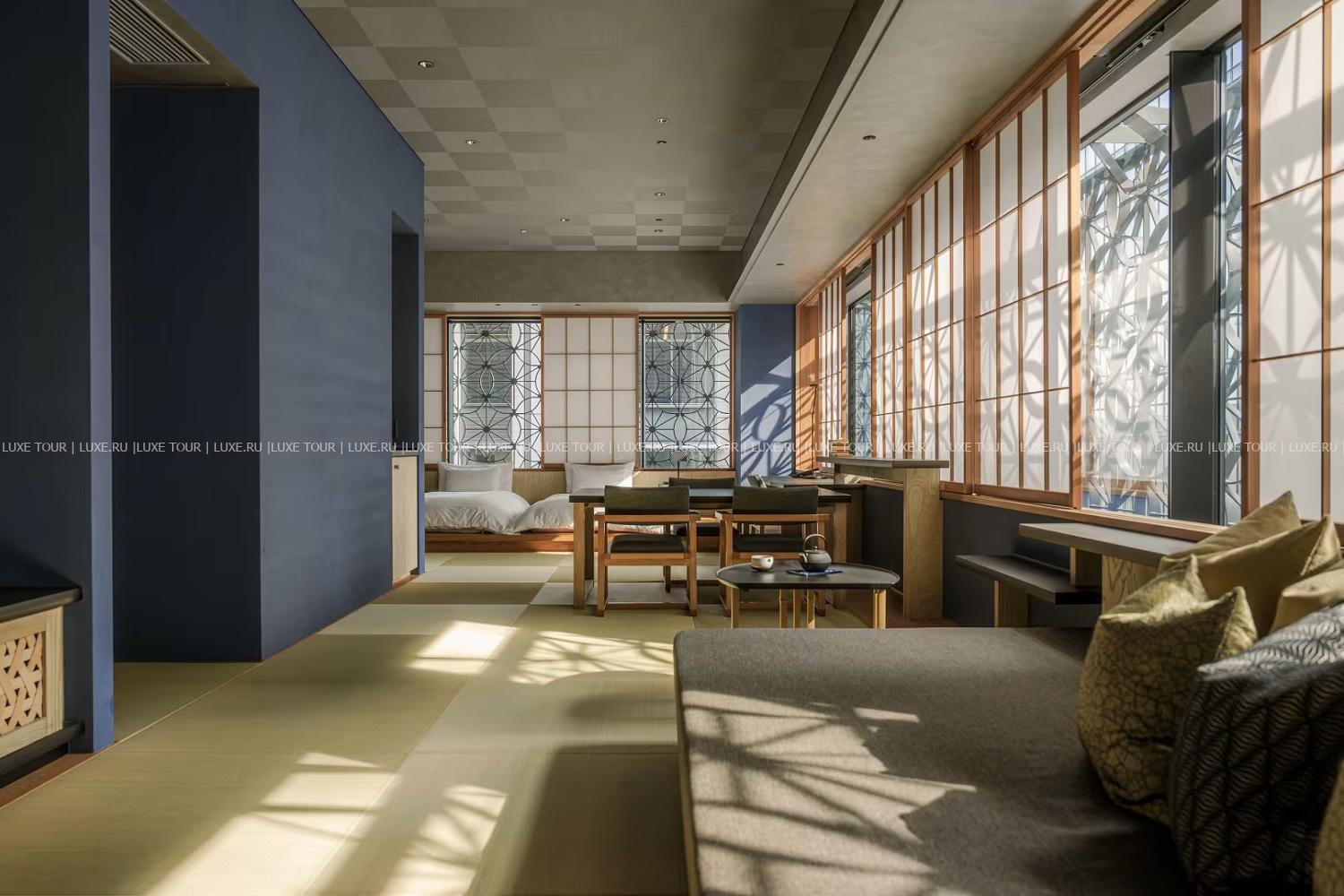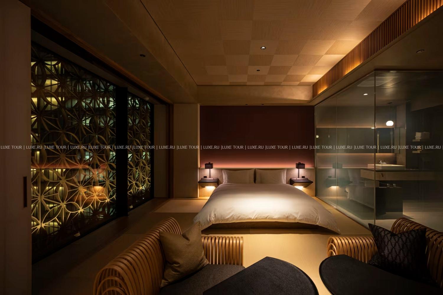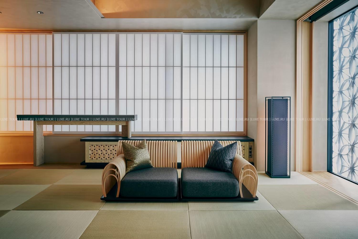 17-этажный Hoshinoya Tokyo возвышается рядом с Императорским дворцом, в окружении небоскребов делового района Отэмати. Элегантный отель, представляющий современную концепцию традиционного рёкана, таит немало сюрпризов – начиная с фасада здания, «облаченного» в трехмерные ажурные конструкции. При входе гости оставляют уличную обувь в специальных резных ящичках, все коридоры отеля для комфорта устланы татами, на каждом этаже, где расположено всего по 6 номеров, имеется свой лаундж с напитками и легкими закусками, а на верхнем этаже, под открытым небом находится бассейн-онсен с целебной водой из соленого термального источника, бьющего из местных недр. Также гости могут расслабиться в Spa-центре, насладиться изысканными блюдами в ресторане, стилизованном под подземелье замка Эдо, попробовать свои силы в национальных ремеслах или взять уроки фехтования на мечах, которые проводятся на крыше, на фоне захватывающей панорамы Токио…Hoshinoya Tokyo предлагает уникальное сочетание современного дизайна, отличного сервиса и древних традиций японского рёкана.
