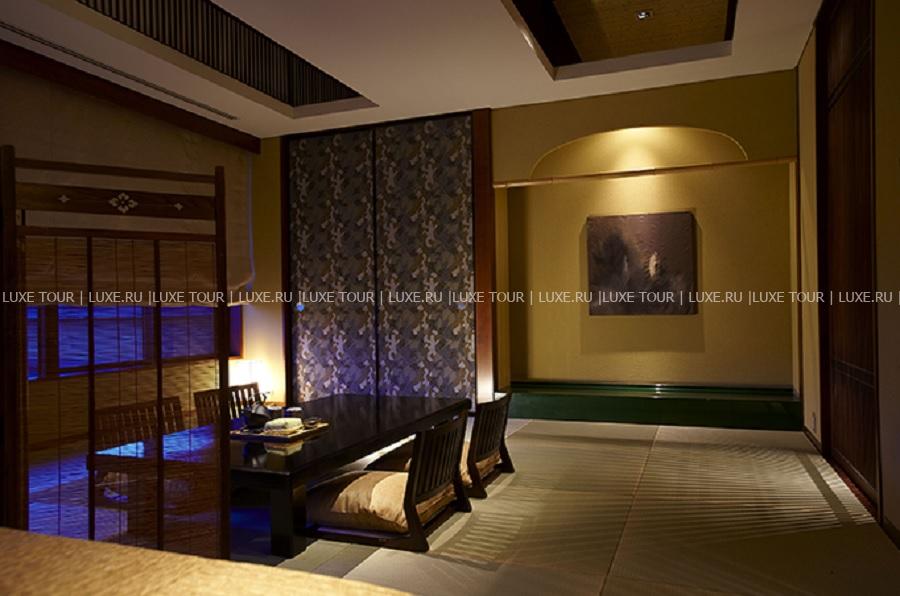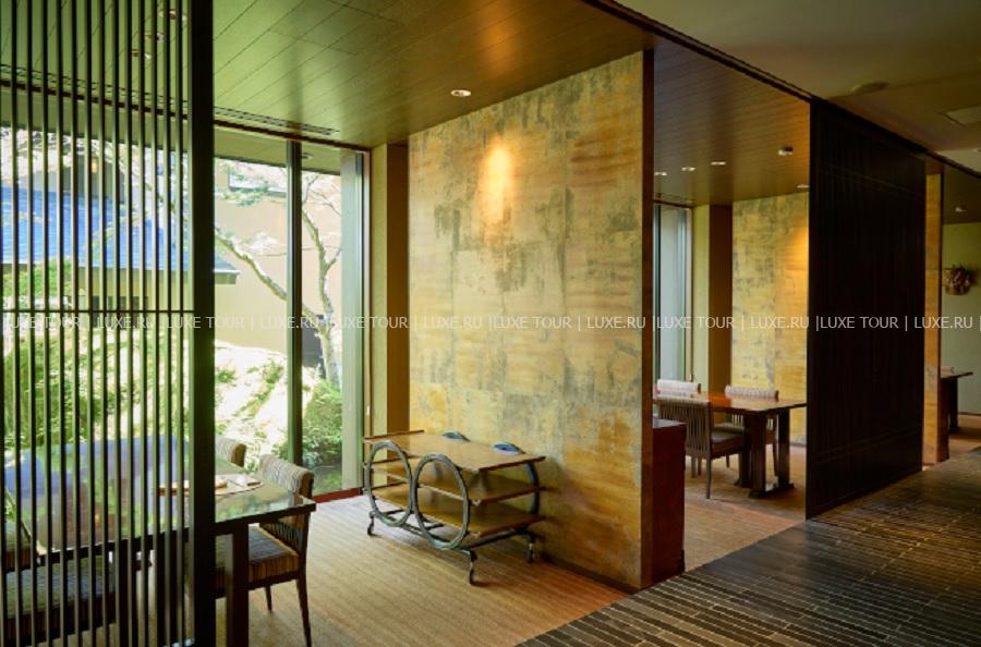 - Элегантный ресторан Kamajin с видом на японский сад представляет традиционную японскую кухню в подаче кайсэки.