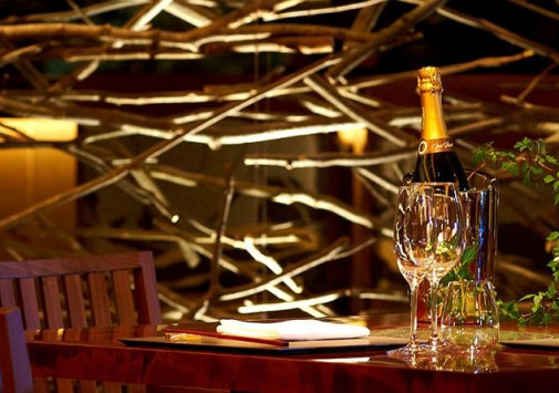- В уютном баре предложен широкий выбор саке, вин и ликеров.