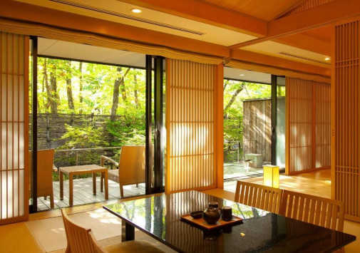 Chikusenso Onsen раскинулся у подножья величественных гор Дзао, среди густых лесов и журчащих рек, на 66 000 м2 живописной территории с собственным горячим источником, который берет начало в 400-летнем «онсэне богов» Тогатта – вода из него чрезвычайно полезна для здоровья. Помимо ванн-онсэнов, расположенных внутри и на открытых террасах отеля, к услугам гостей просторные номера, восхищающие комфортом и элегантным декором в японском и западном стиле, ресторан, предлагающий высокую японскую кухню в традиционной подаче «кайсэки», и уютные бары, где можно отдохнуть за сакэ или бокалом вина, любуясь идиллической красотой горных пейзажей. Chikusenso Onsen сочетает высококлассный современный сервис, гостеприимную атмосферу и аутентичные традиции Японии.