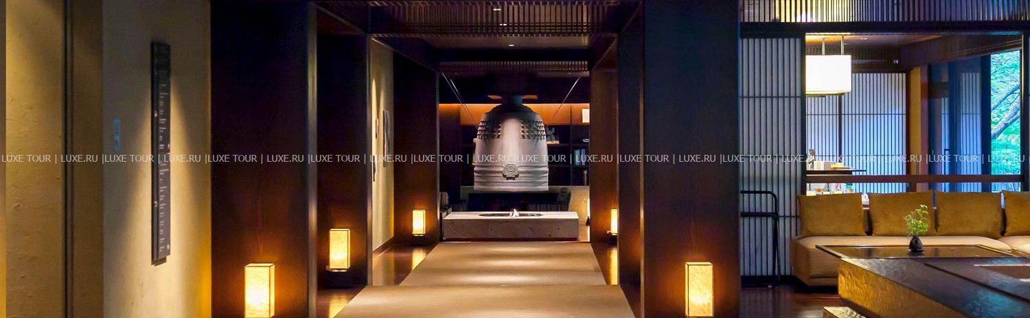 112 м2. Номер в японском стиле состоит из спальни с двумя кроватями twin, гостиной с обеденной зоной, чайной комнаты, гардеробной, ванной комнаты с керамической ванной и душем, террасы с японским садом и панорамным видом на горы. Номер расположен на верхнем этаже.