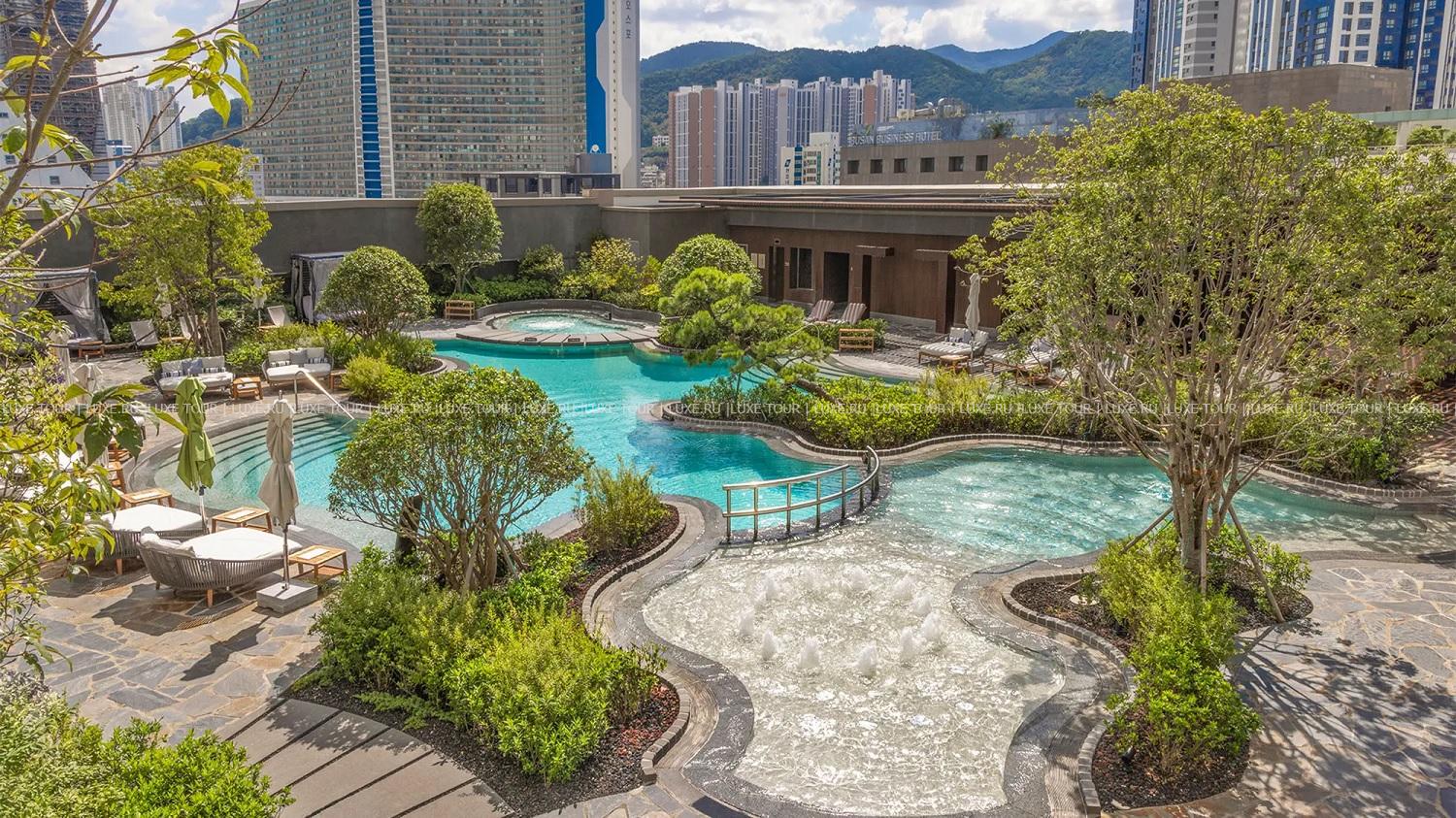 В отеле имеются открытый пейзажный бассейн с подогревом и панорамным видом на город, и крытый бассейн со стеклянным потолком.