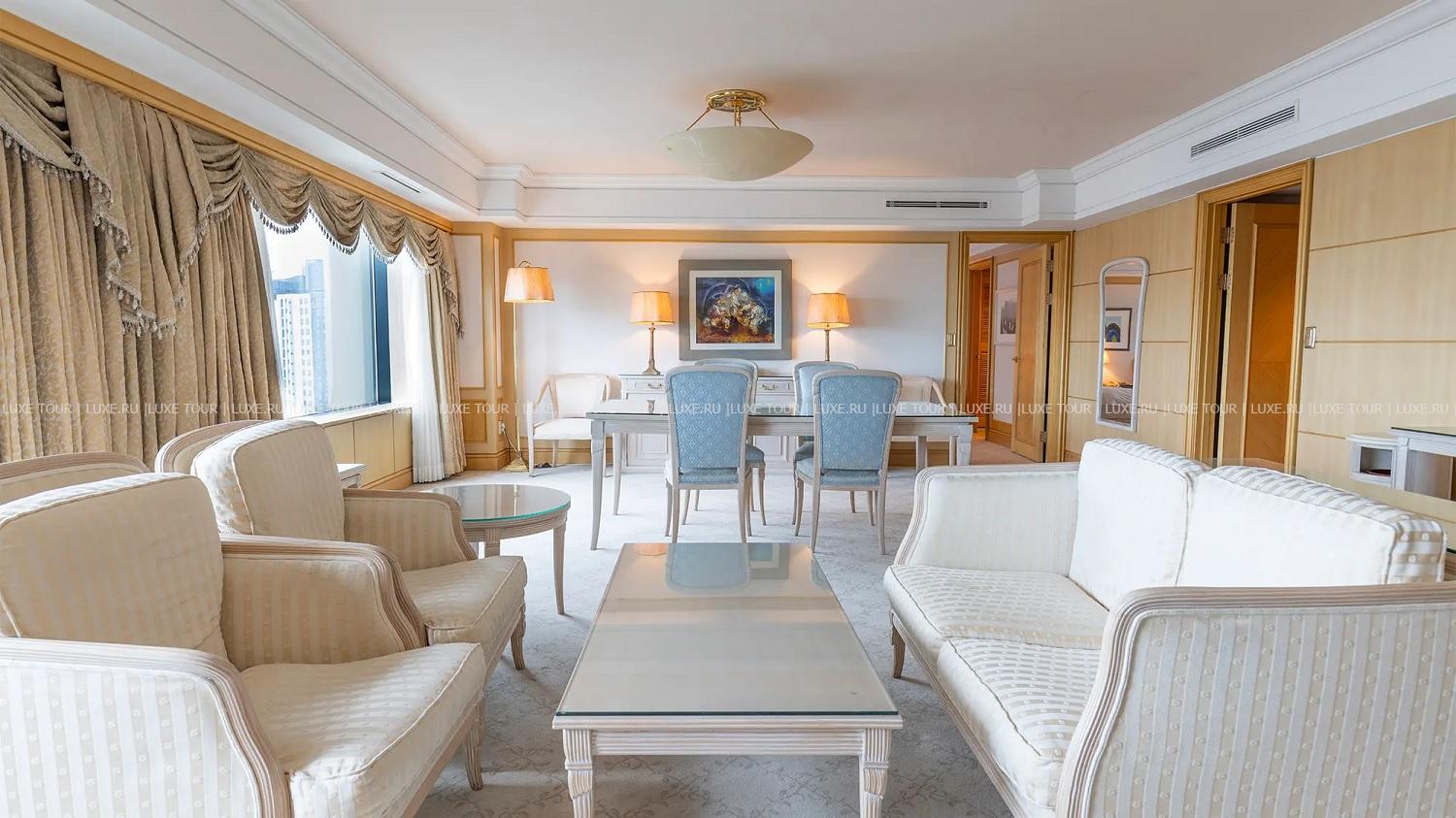 Для гостей – 10 залов для деловых и торжественных мероприятий, вмещающих от 10 до 700 человек, включая залы Crystal Ballroom площадью 1345 м2 и Sapphire Ballroom площадью 253 м2, бизнес-центр, Wi-Fi, магазин Duty Free площадью 7600 м2, парковка, аренда машин, услуги консьержа, услуги прачечной.