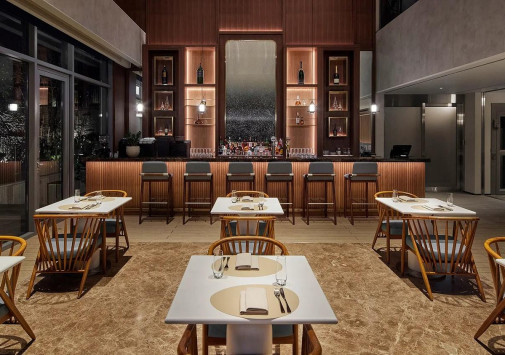 - Momoyama – стильный японский ресторан с потрясающим видом на город, открывающимся с 43 этажа.