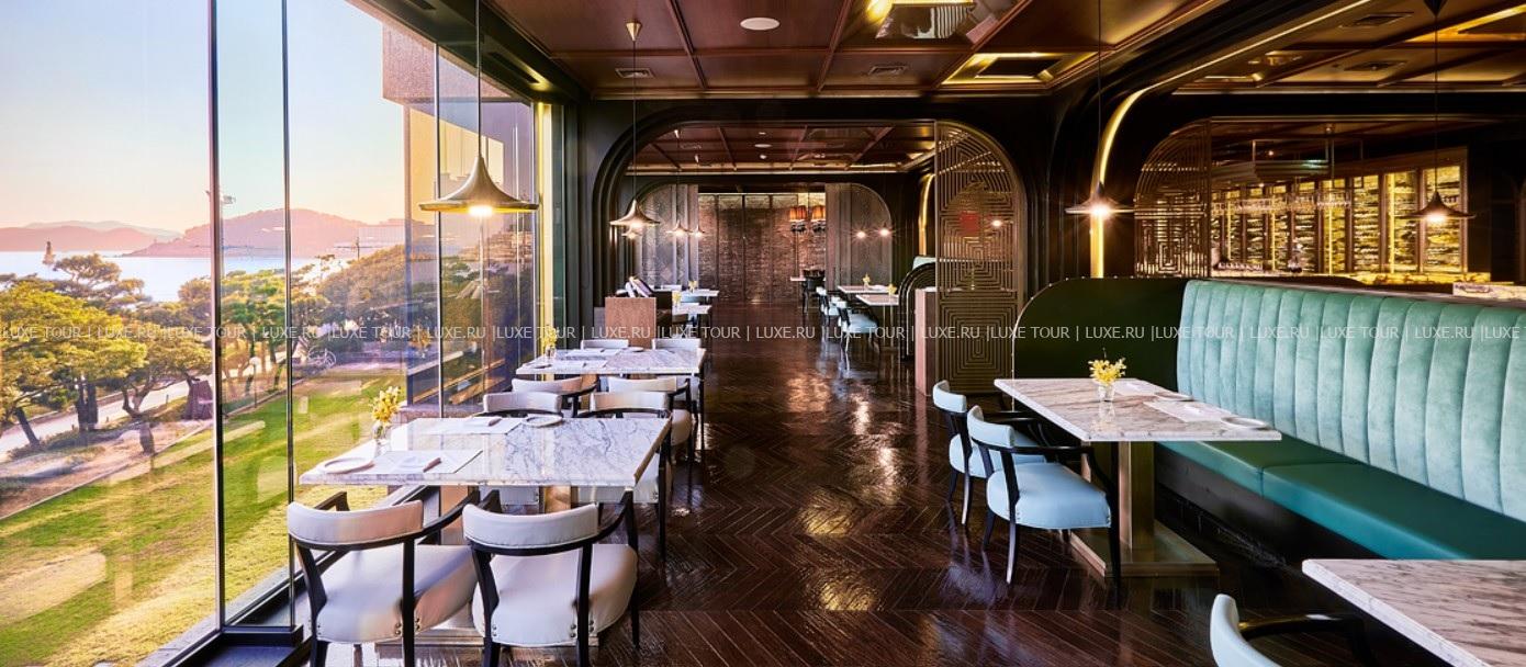 - Стильный гриль-ресторан La Scala с панорамным видом на Корейский пролив специализируется на традиционной итальянской кухне.