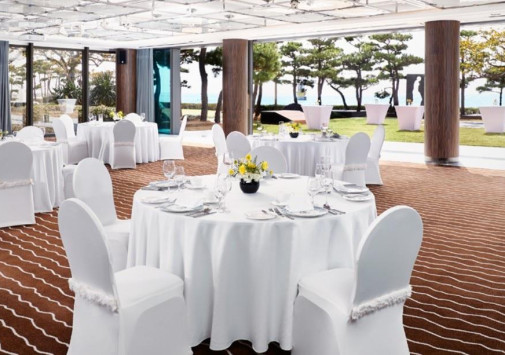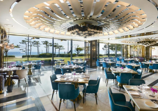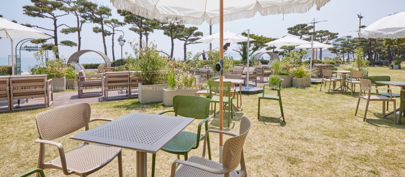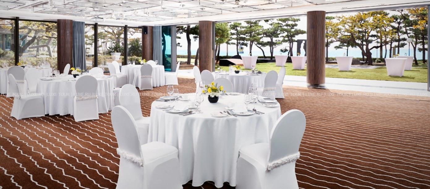 - Просторный ресторан On the Plate с открытой террасой и прекрасным видом на море, сады и пляж Хэундэ впечатляет богатым «шведским столом» с блюдами интернациональной и региональной кухни.
