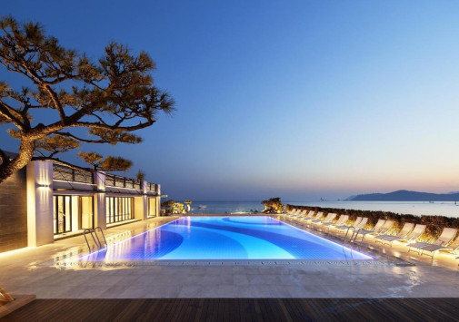 Отель расположен на побережье Пусана, у пляжа Хэундэ, примерно в 40 минутах езды от международного аэропорта Кимхэ.