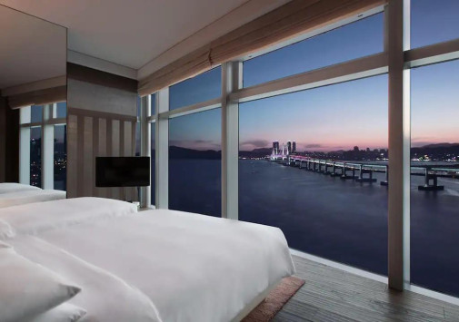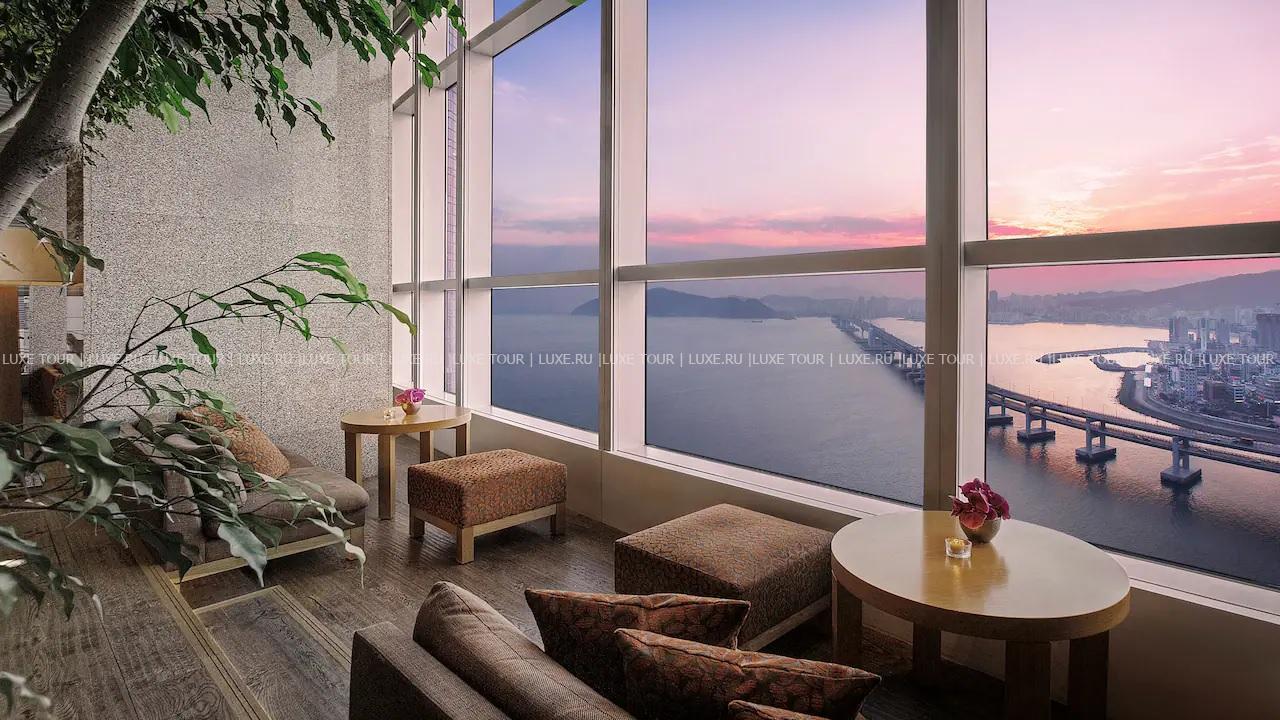 Футуристический, сверкающий зеркалами окон небоскреб Park Hyatt Busan возвышается над синей гладью Корейского пролива и живописной гаванью. Отель. расположенный в престижном комплексе «Морской город», сочетает утонченную роскошь всемирно известного гостиничного бренда и традиции корейского гостеприимства – от стильного дизайна просторных комфортабельных номеров и гастрономических изысков в ресторанах до Spa-центра с панорамным бассейном и многофункциональных залов конференц-центра. При этом, из всех окон здесь открывается фантастический вид на искрящиеся воды пролива, яхтенную гавань и грандиозный висячий мост Кванъан. Park Hyatt Busan – один лучших отелей класса «люкс» в Пусане.
