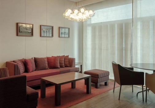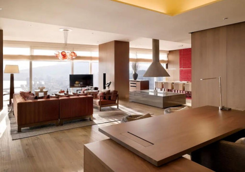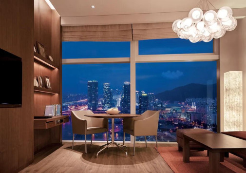 - В стильном баре Living Room с панорамными, во всю стену окнами можно отдохнуть за коктейлем, бокалом вина или аперитивом, любуясь фантастическим видом на грандиозный мост Кванъан и сверкающие воды залива Суёнман.