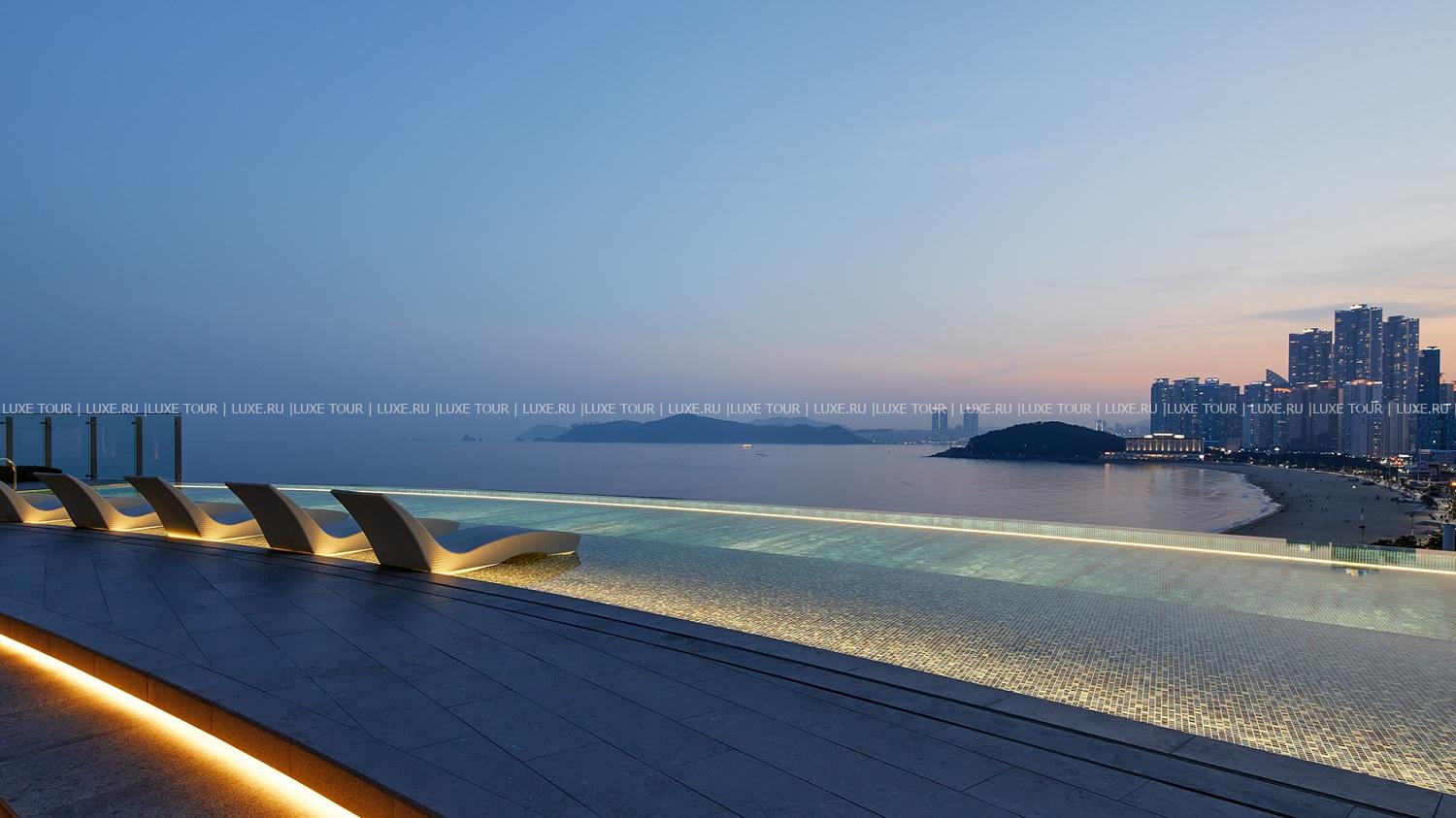 В отеле имеются круглогодичный открытый бассейн-инфинити с панорамным видом на море и пляж Хэундэ, и крытый бассейн с подогревом.