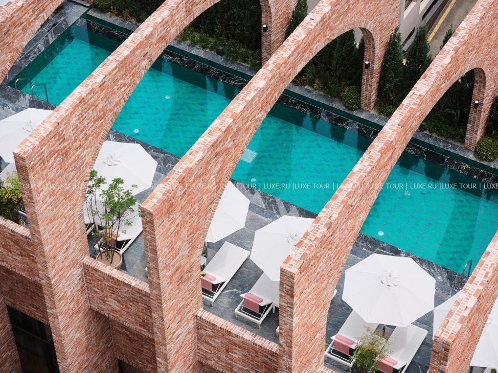 65 м2 + балкон 5 м2. Двухуровневый номер с панорамными окнами состоит из спальни, гостиной с обеденной зоной, ванной комнаты с ванной и душем, балкона с видом на город. Номера расположены на верхних этажах T1~T3.